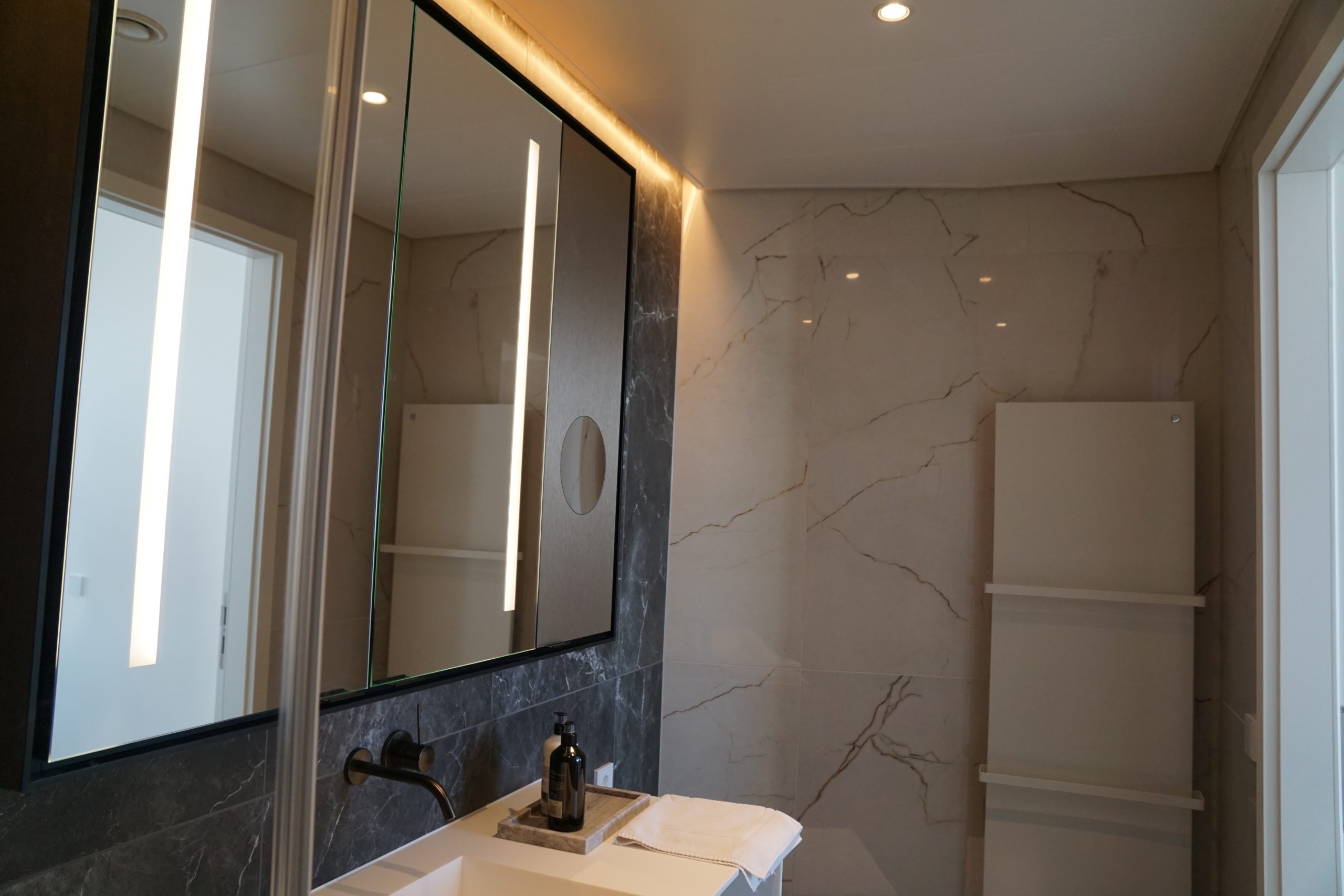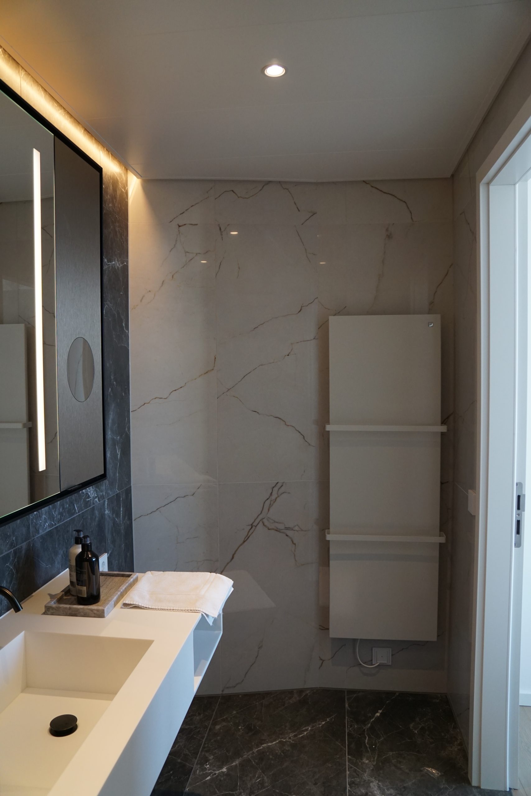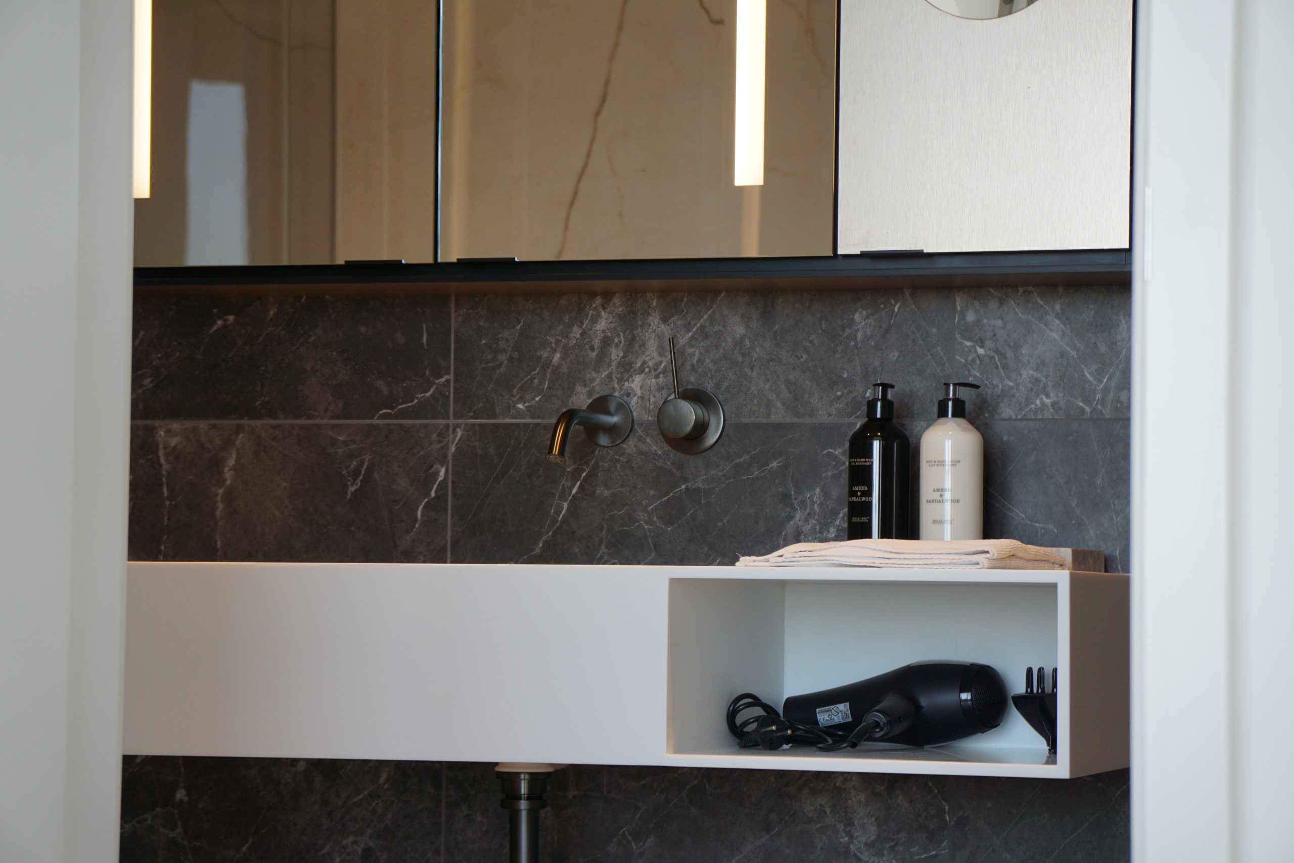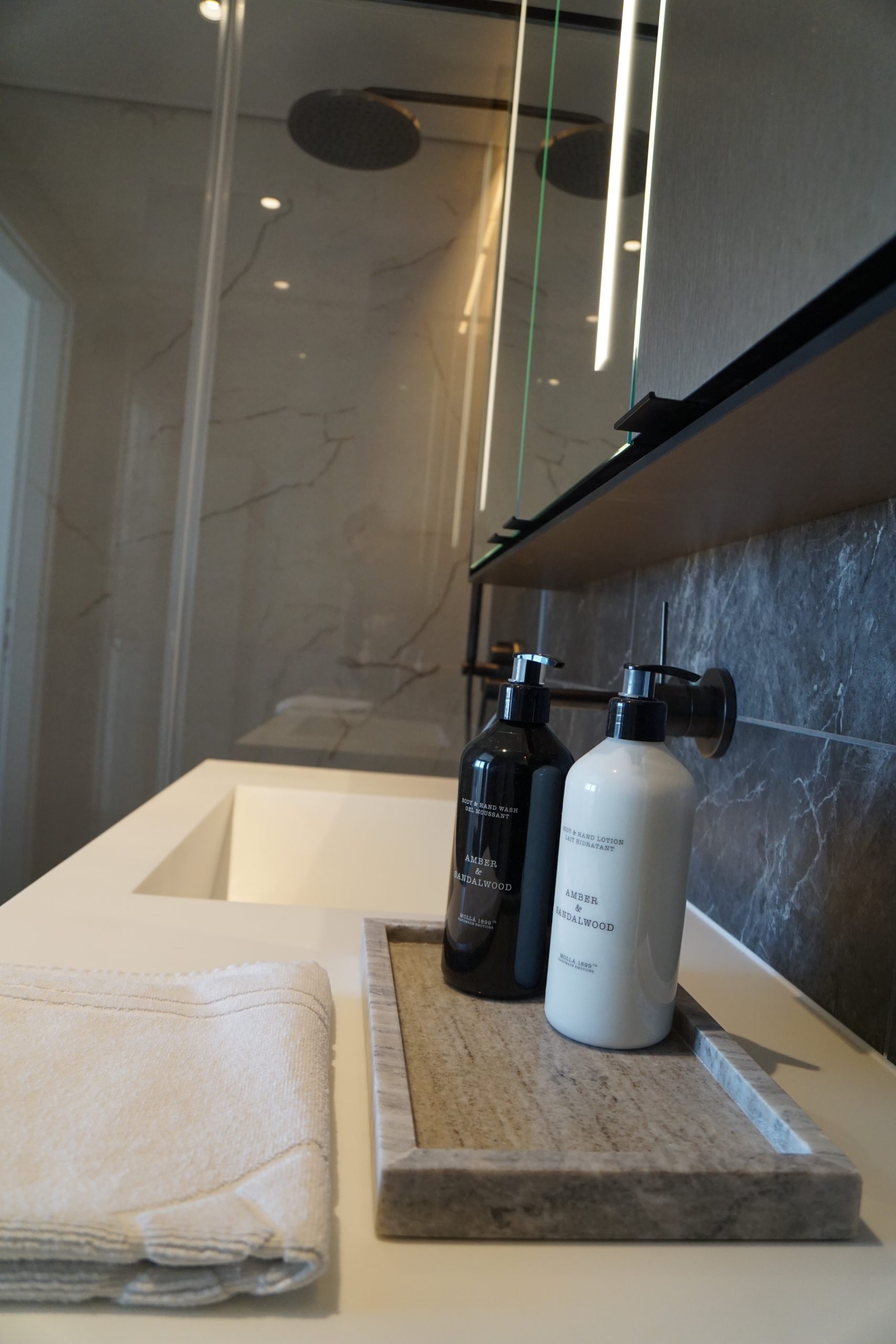 Luxurious bathroom with underfloor heating and kitchen with first-class appliances, floor-to-ceiling windows, electronic control of lighting, blinds, ventilation, heating and cooling, planted troughs with automatic irrigation system on the balcony.