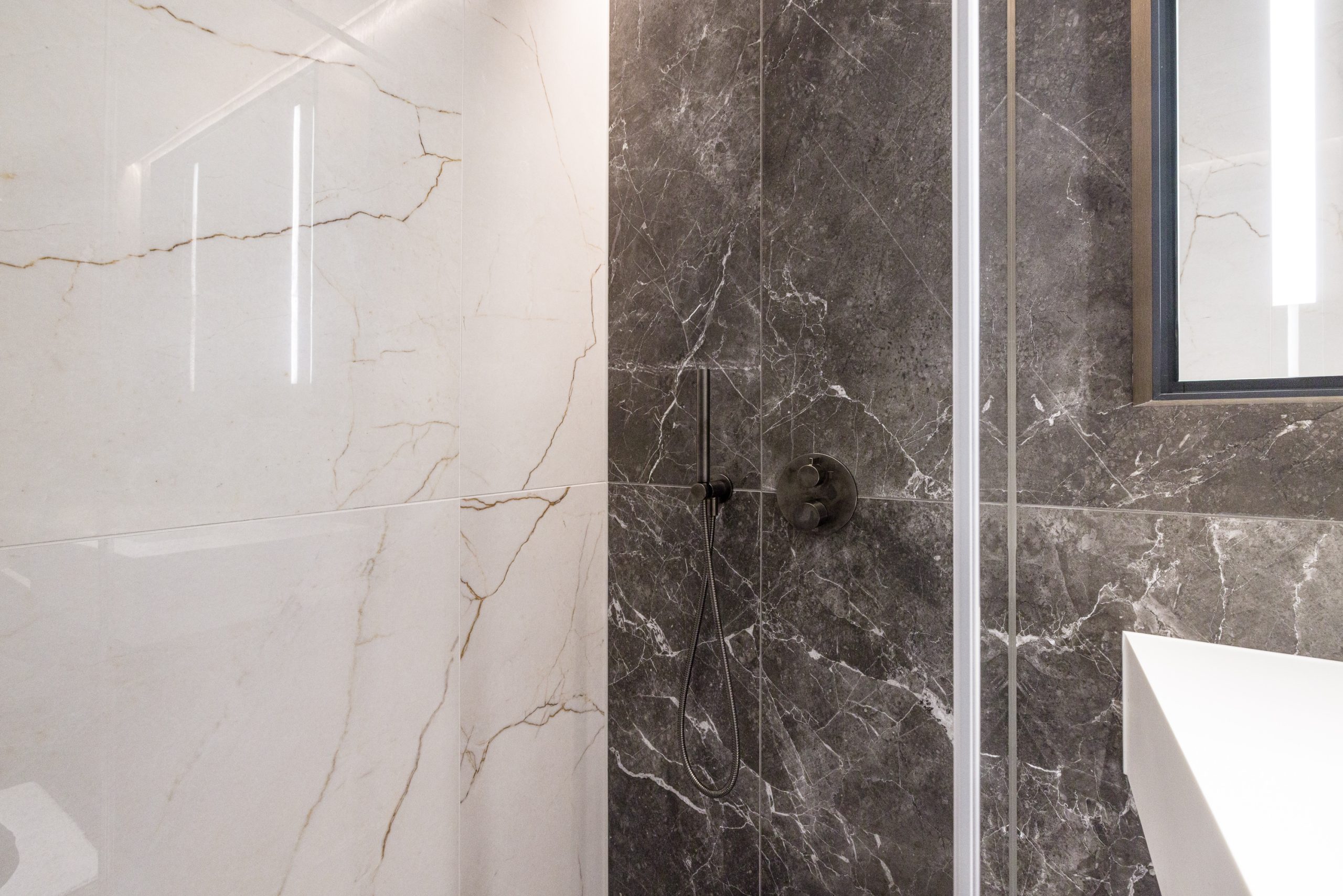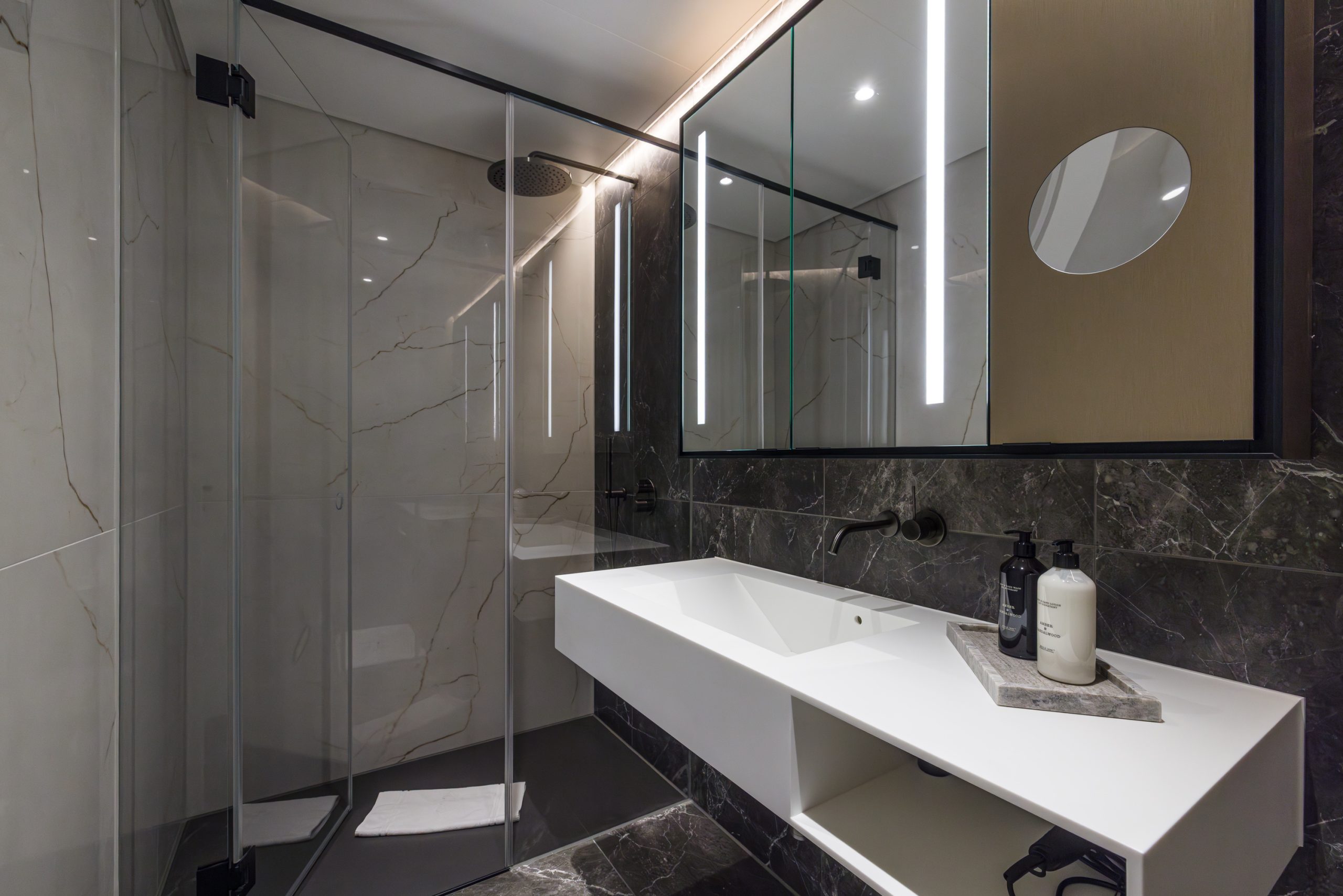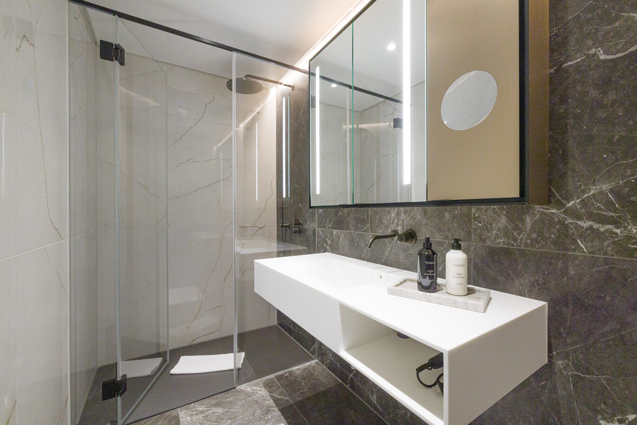 A separate bedroom with an elegant en suite bathroom