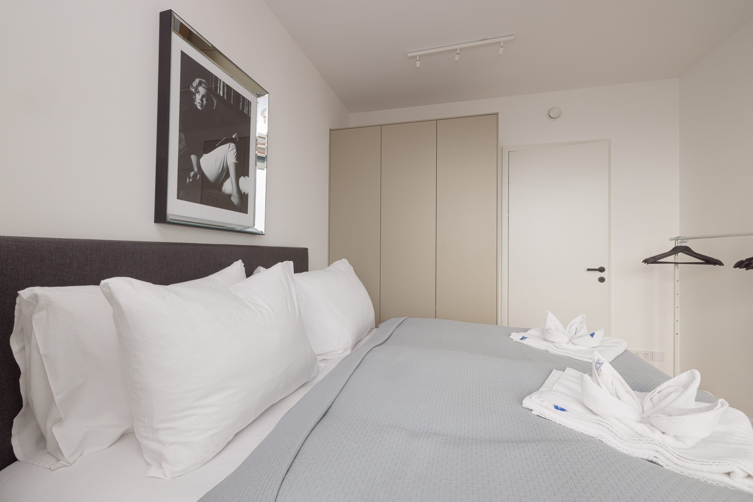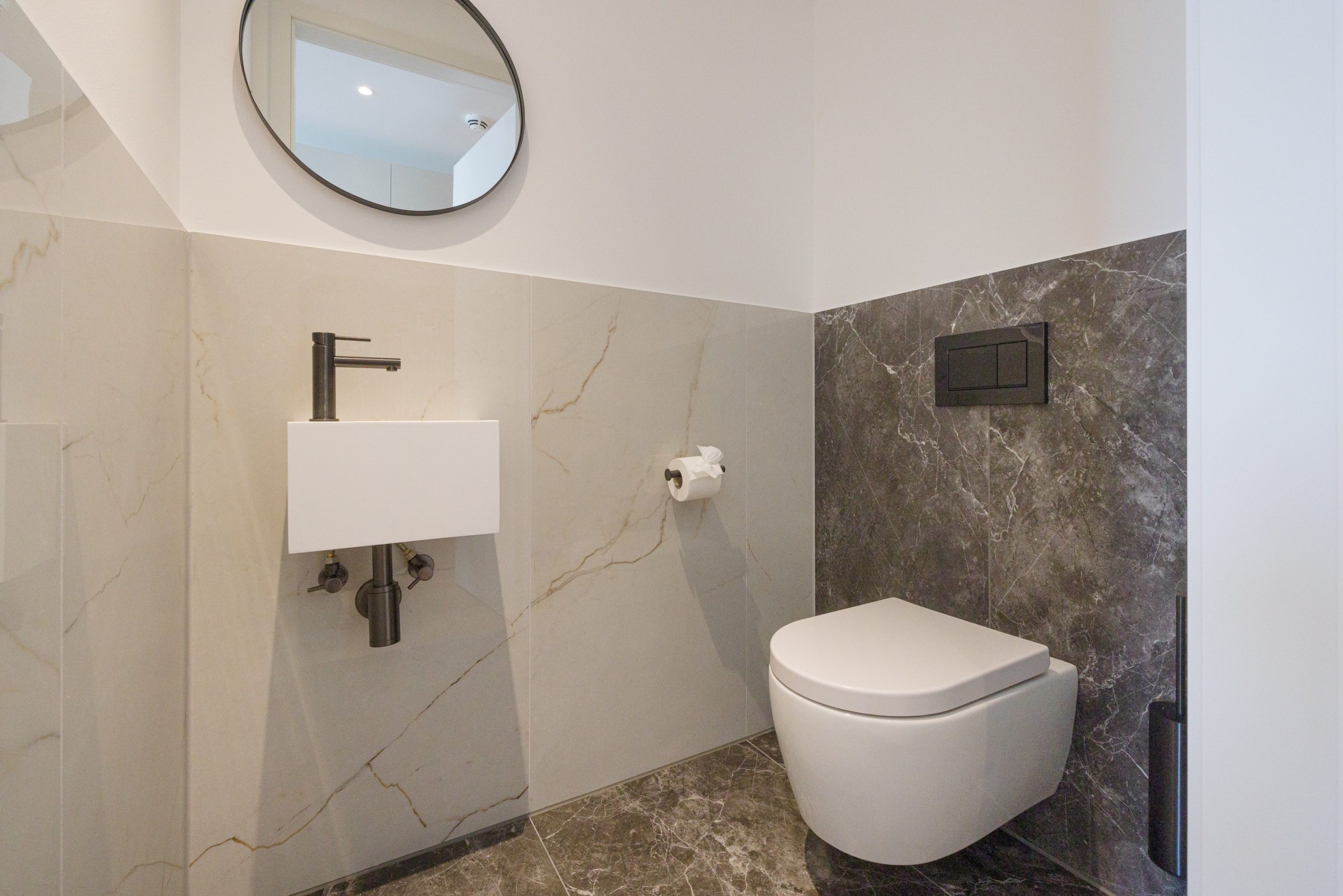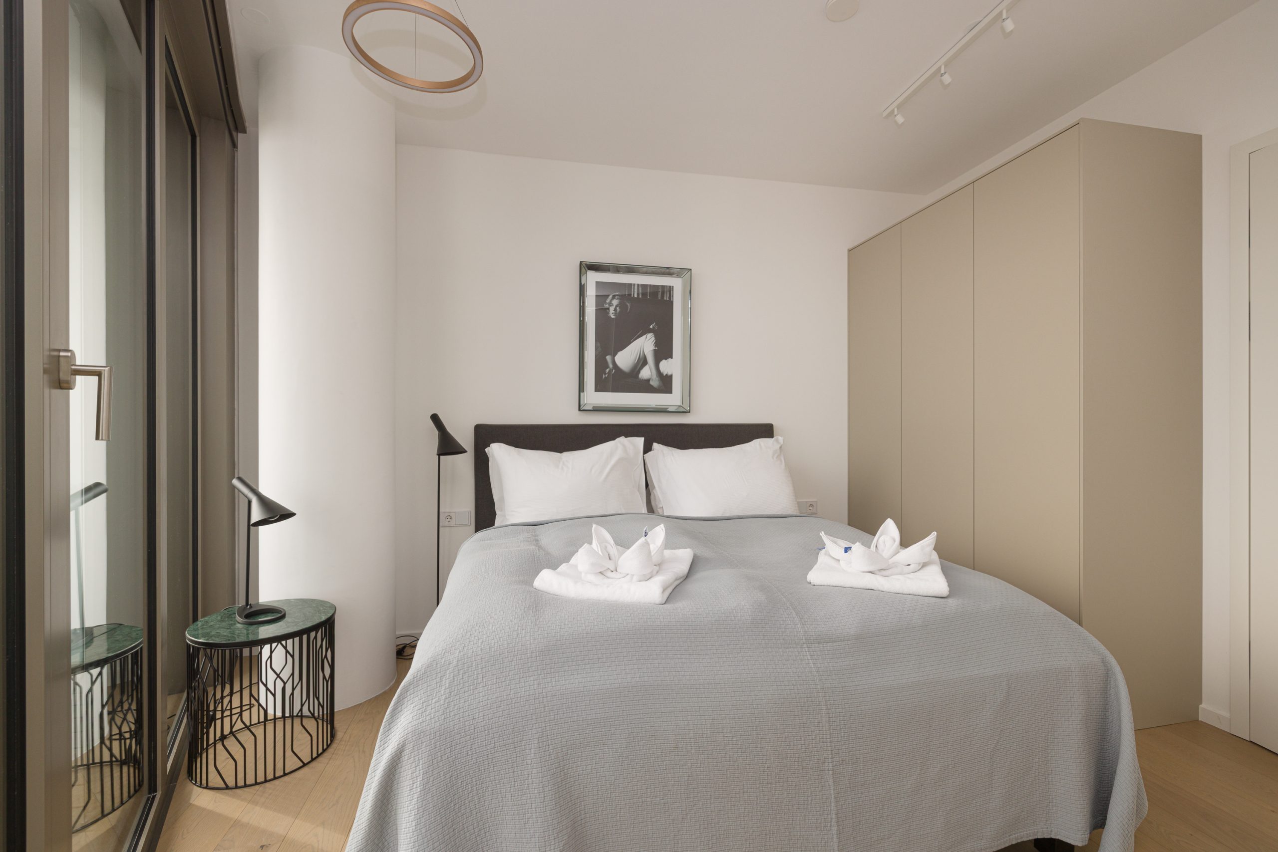 A separate bedroom with an elegant en suite bathroom