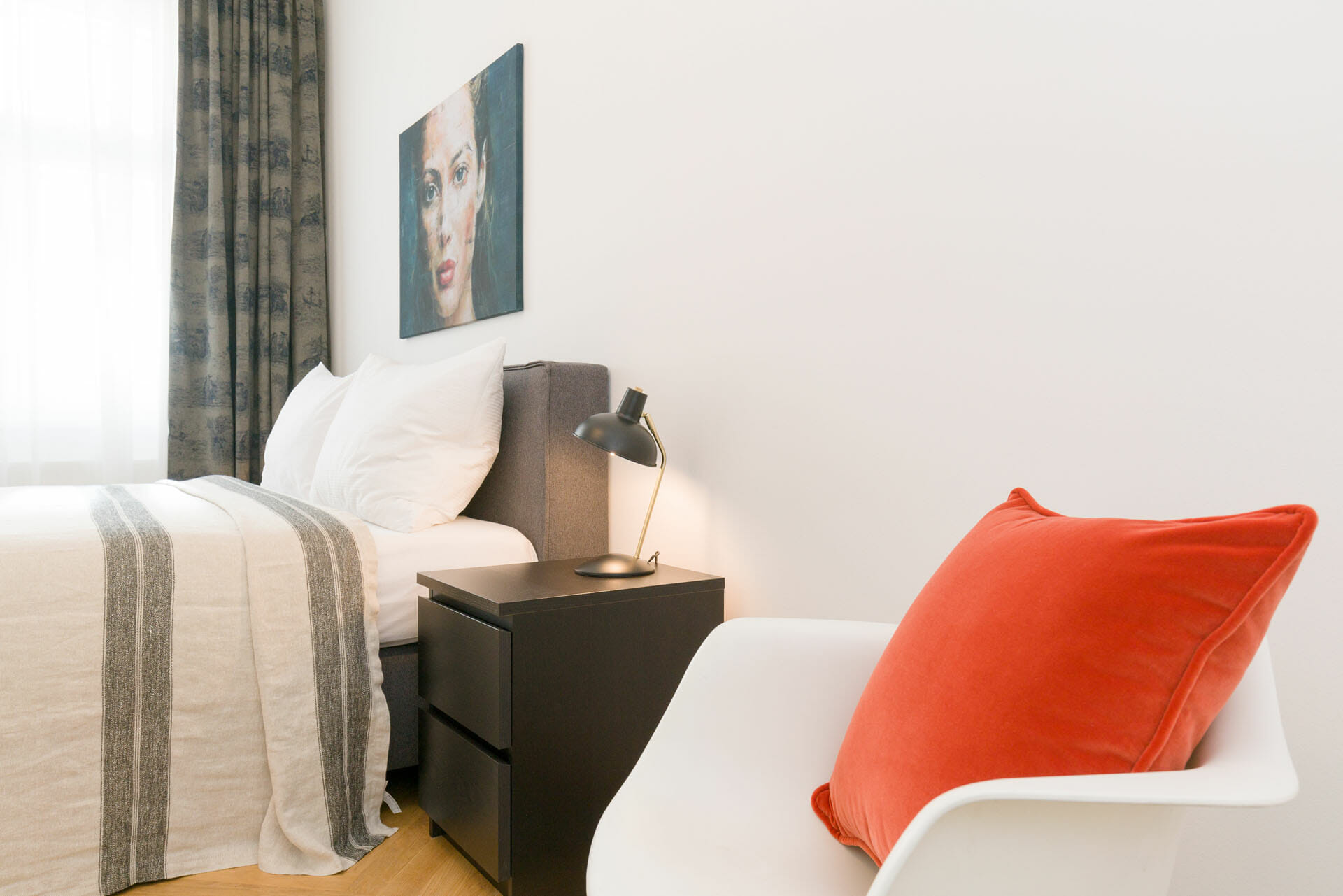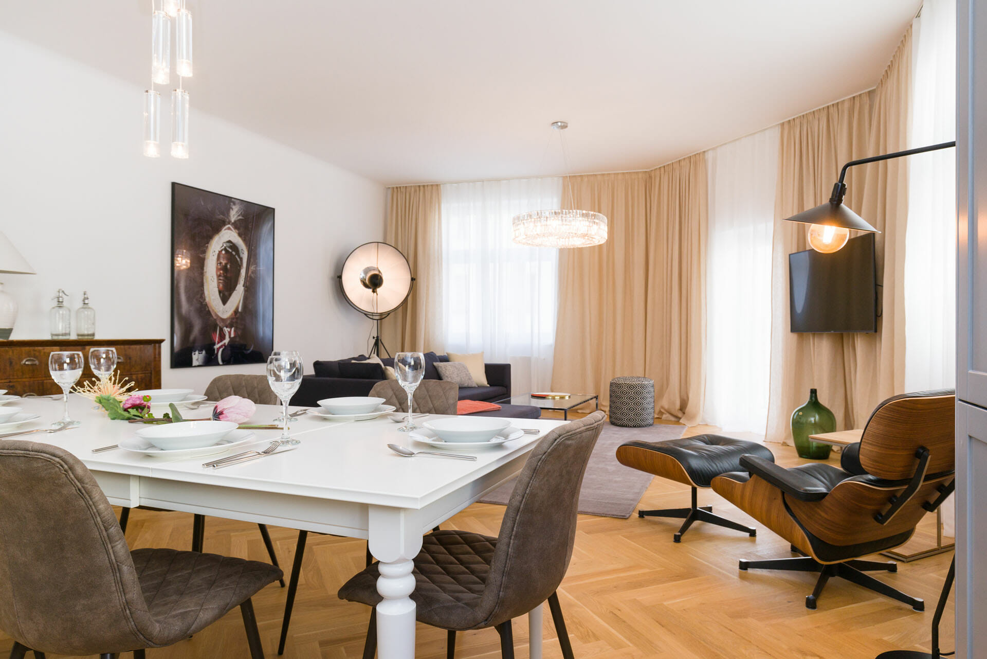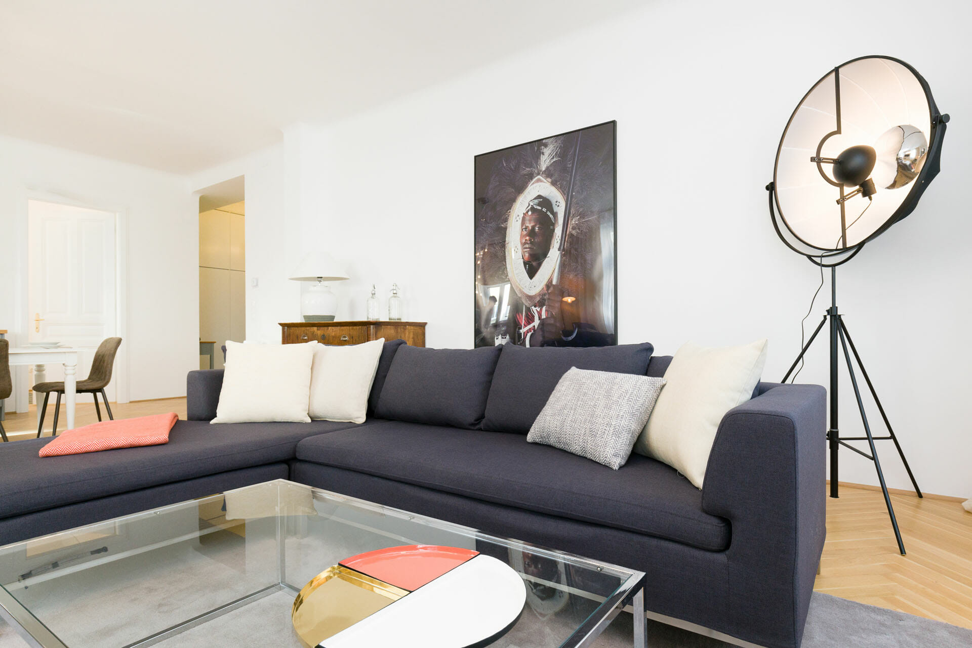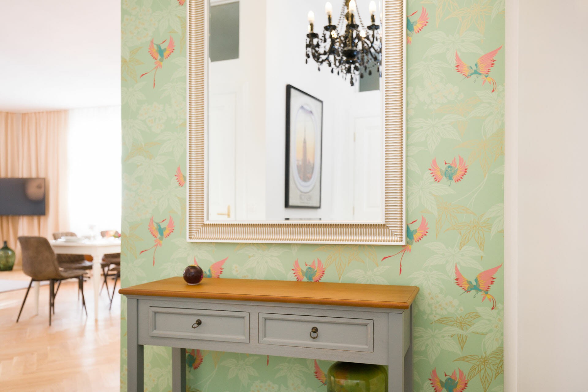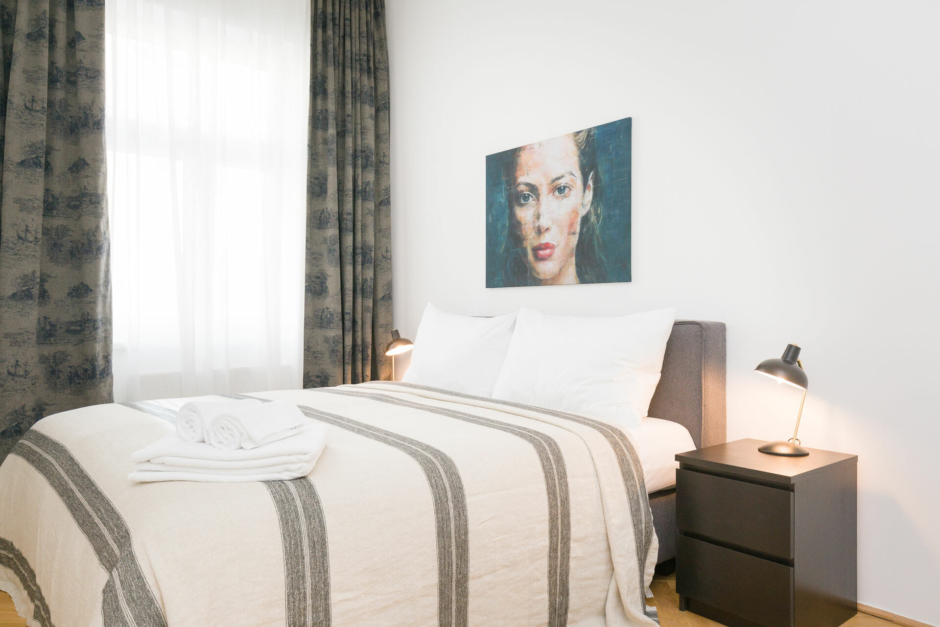 This wonderful two bedroom apartment has been newly renovated to a very high standard. Exclusive furniture has been selected by our interior designer which gives every apartment its special touch. The kitchen is custom made and offers amples space for all cooking items. Even though the apartment is located in a traditional Viennese Altbau, it is equipped with air conditioning.