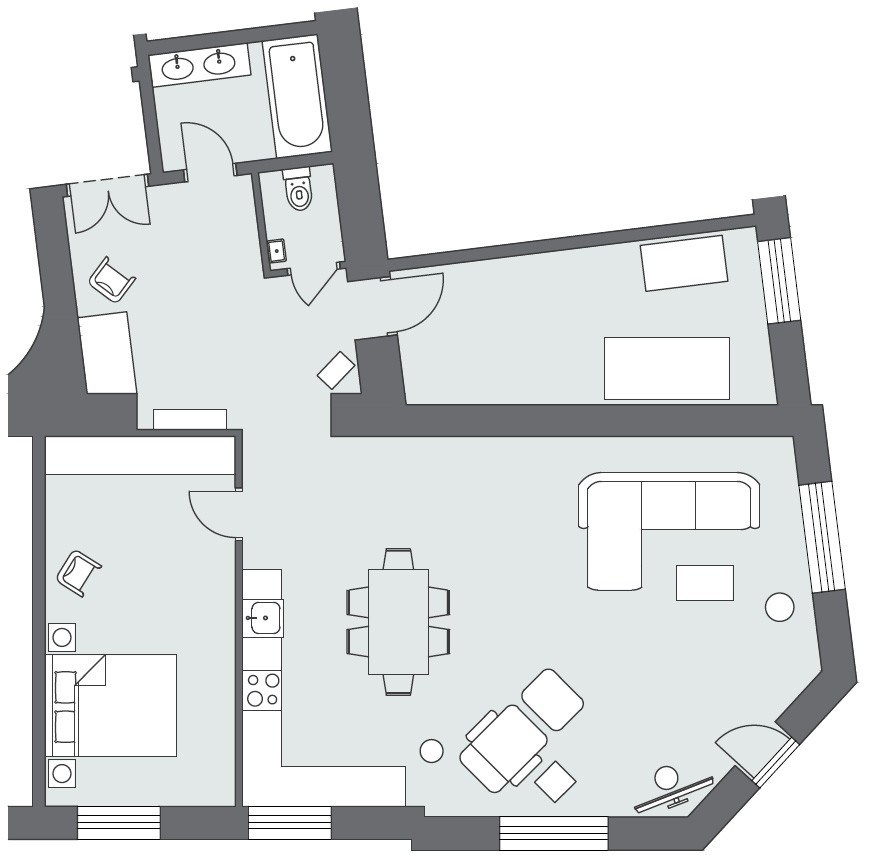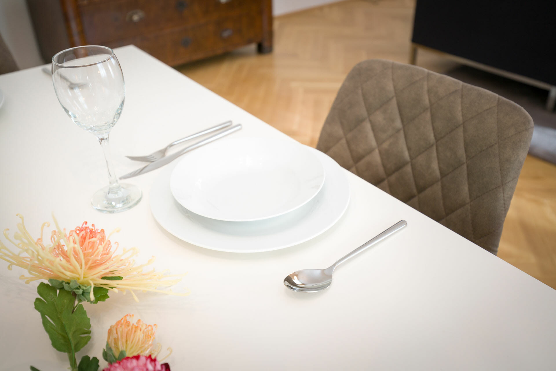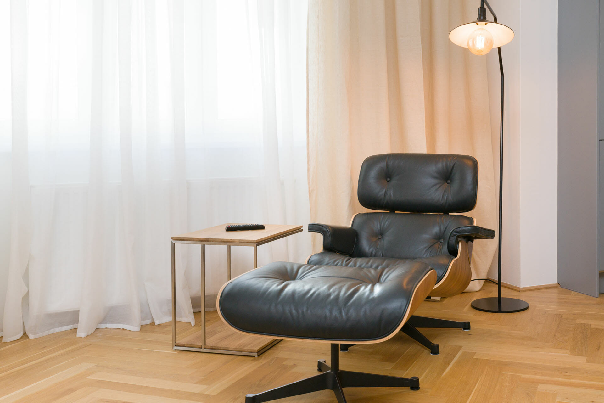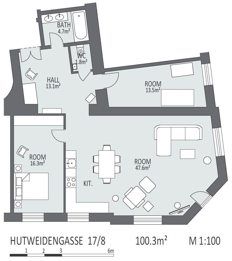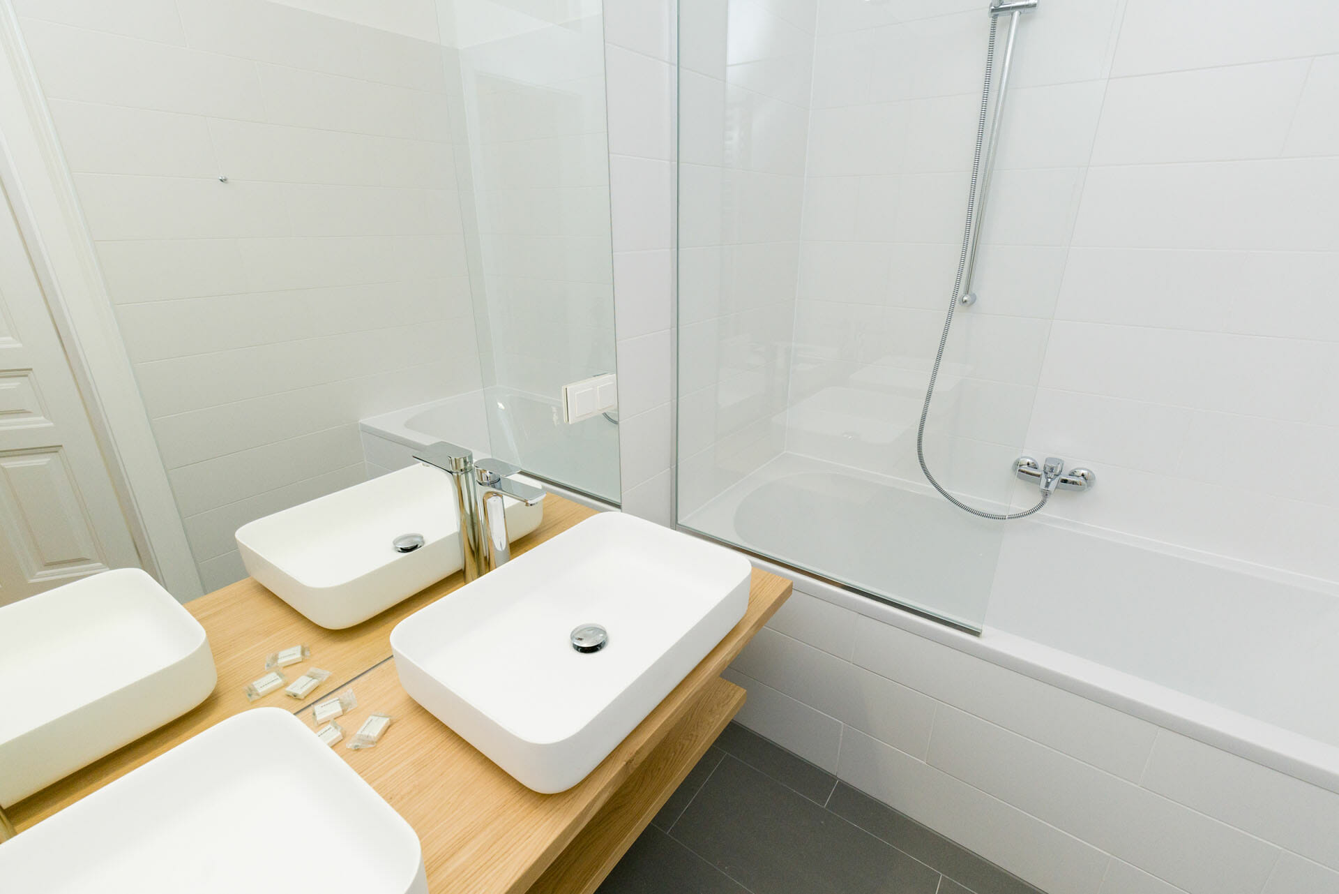 This wonderful two bedroom apartment has been newly renovated to a very high standard. Exclusive furniture has been selected by our interior designer which gives every apartment its special touch. The kitchen is custom made and offers amples space for all cooking items. Even though the apartment is located in a traditional Viennese Altbau, it is equipped with air conditioning.