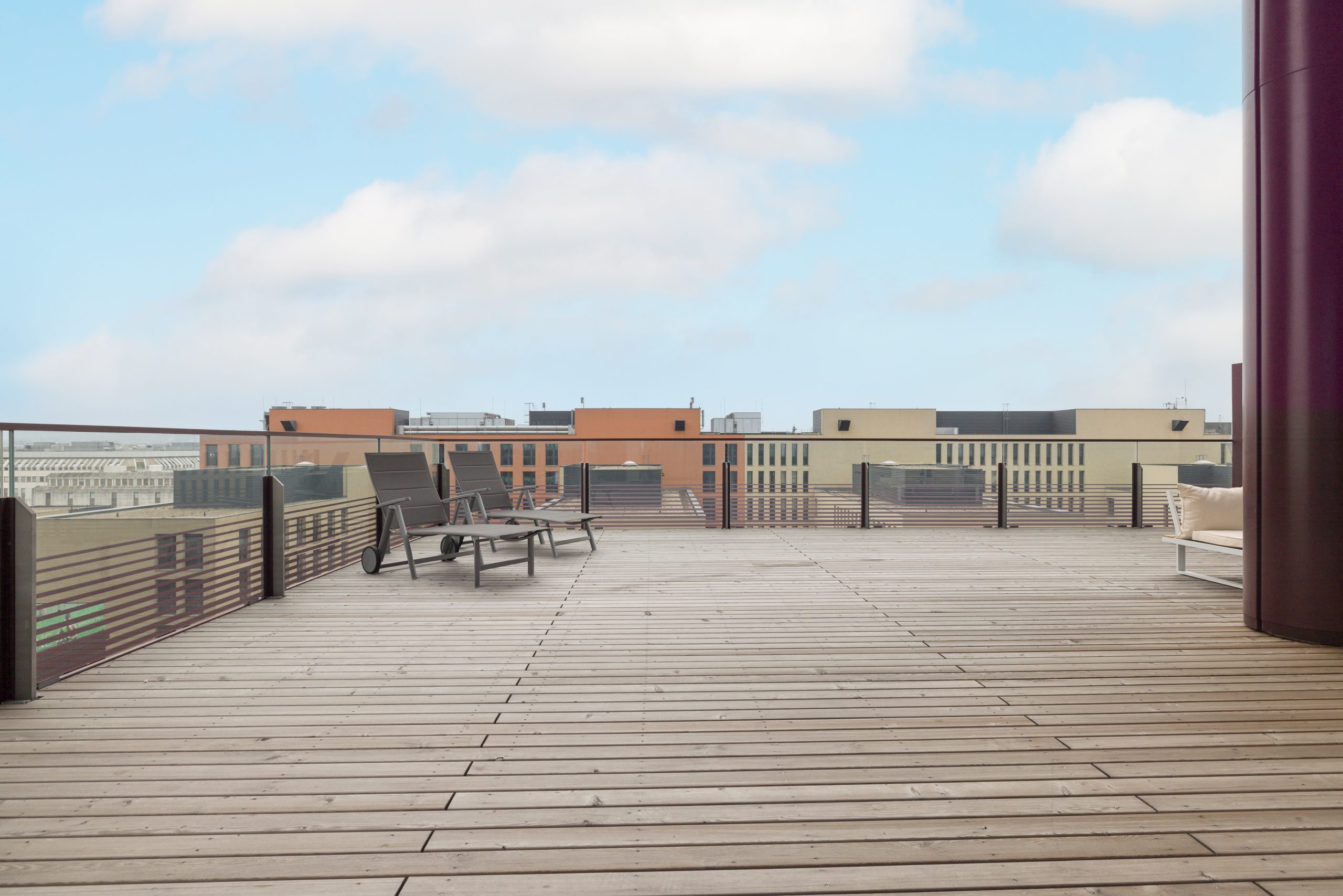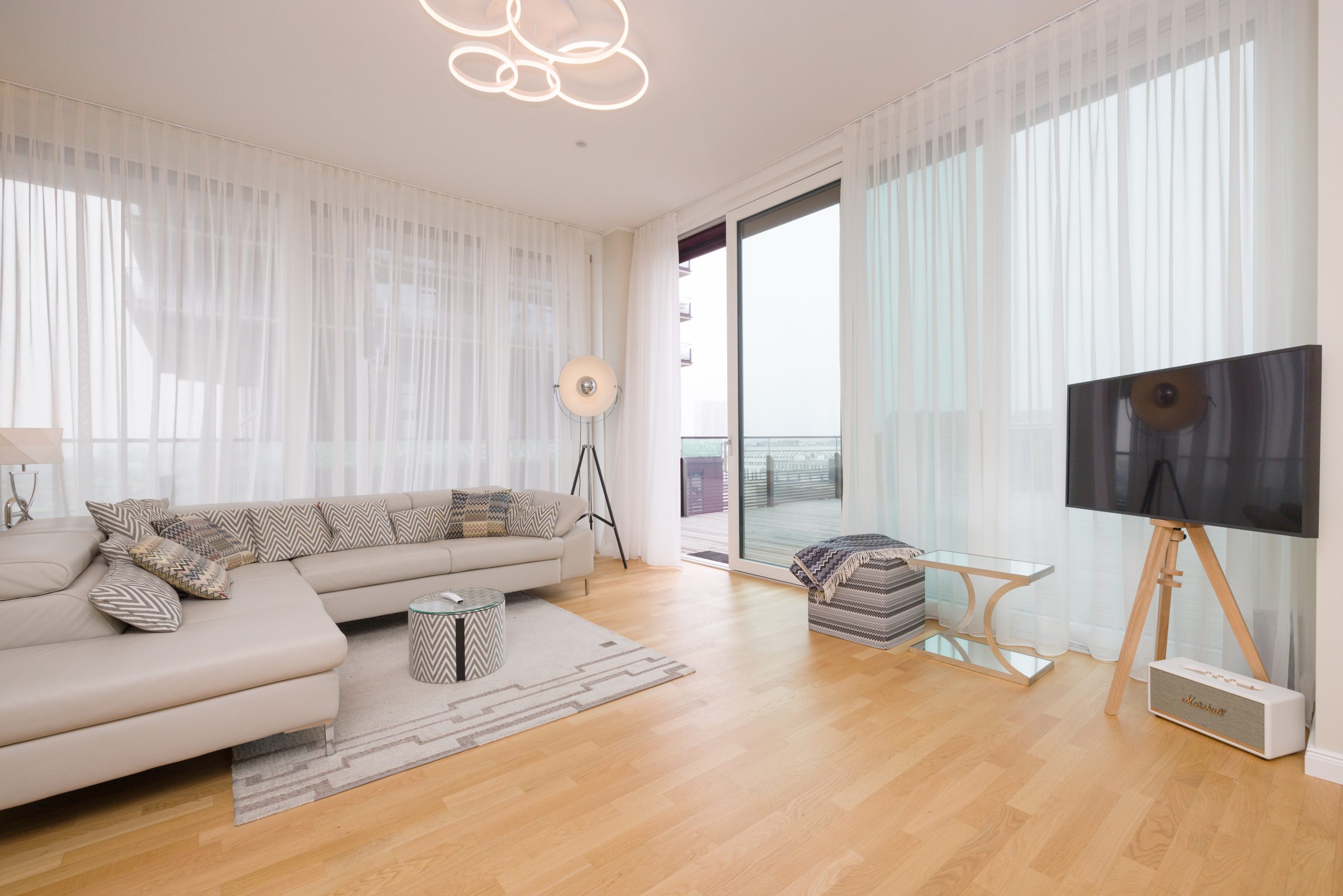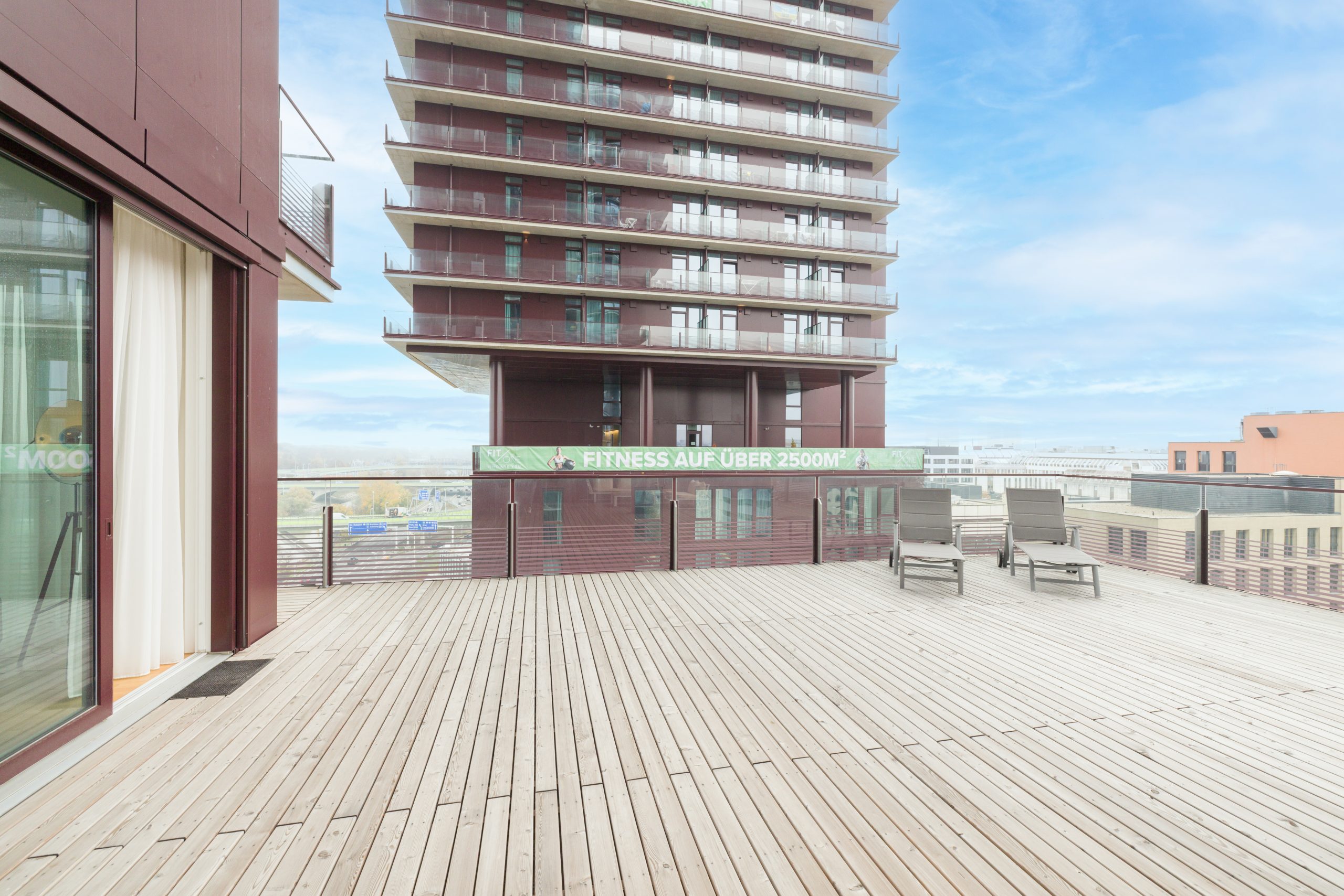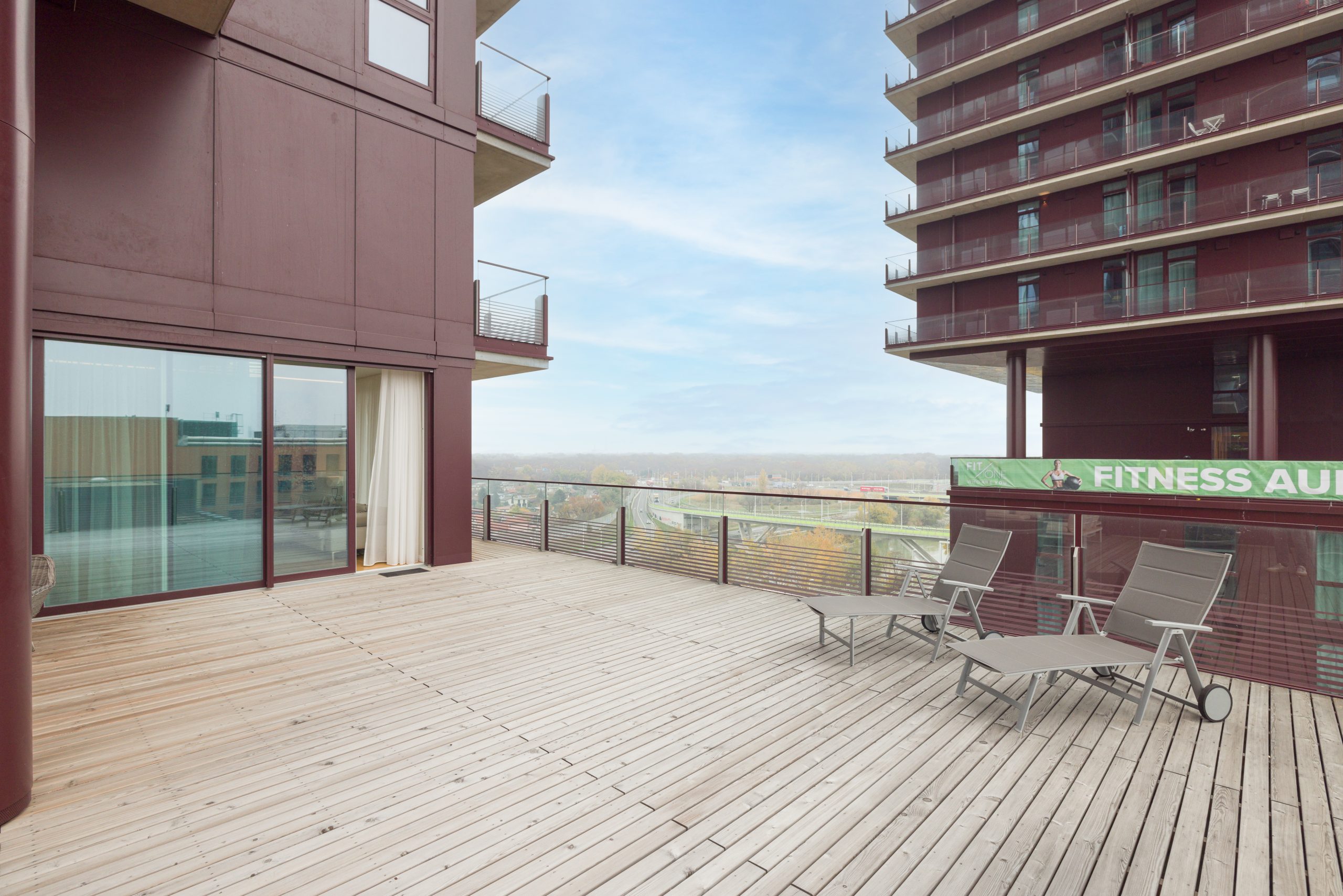 Fully furnished apartment in the best high building of the world: Triiiple Tower. The apartment has everything you need in a new building with elevator (no barriers like stairs!) and the space is perfectly used. Living room with fully equipped kitchen, couch and dining table. Bedroom with a big closet and bathroom with bath tub. Separate toilet. The best thing is the 103m2 big terrace!