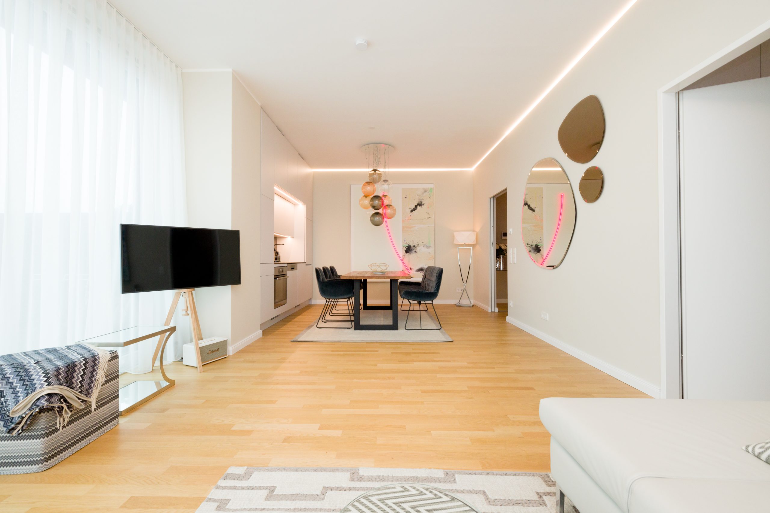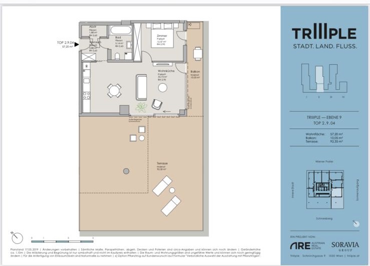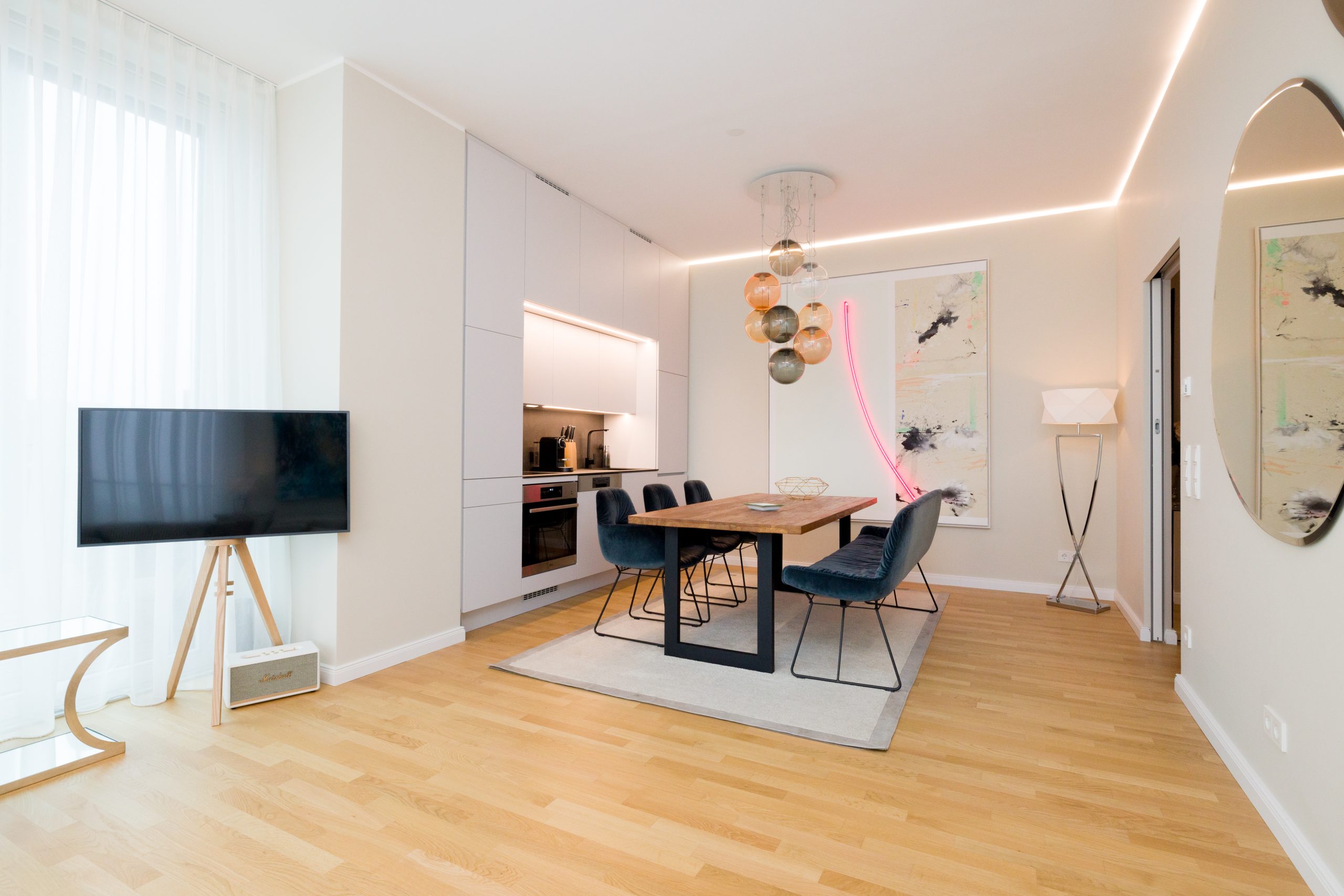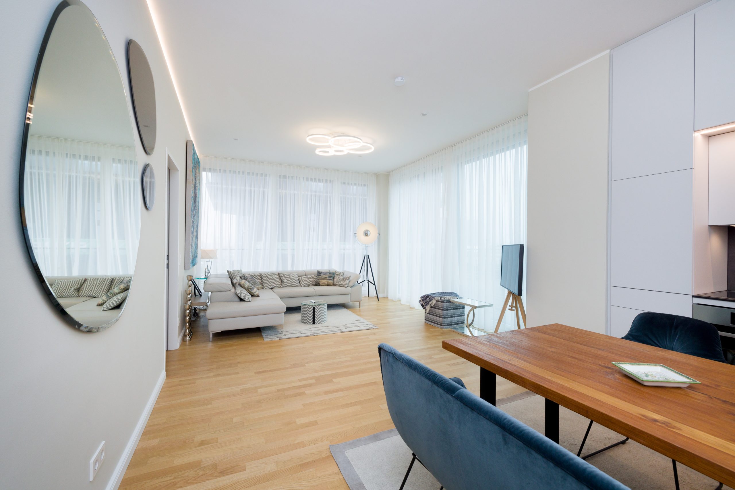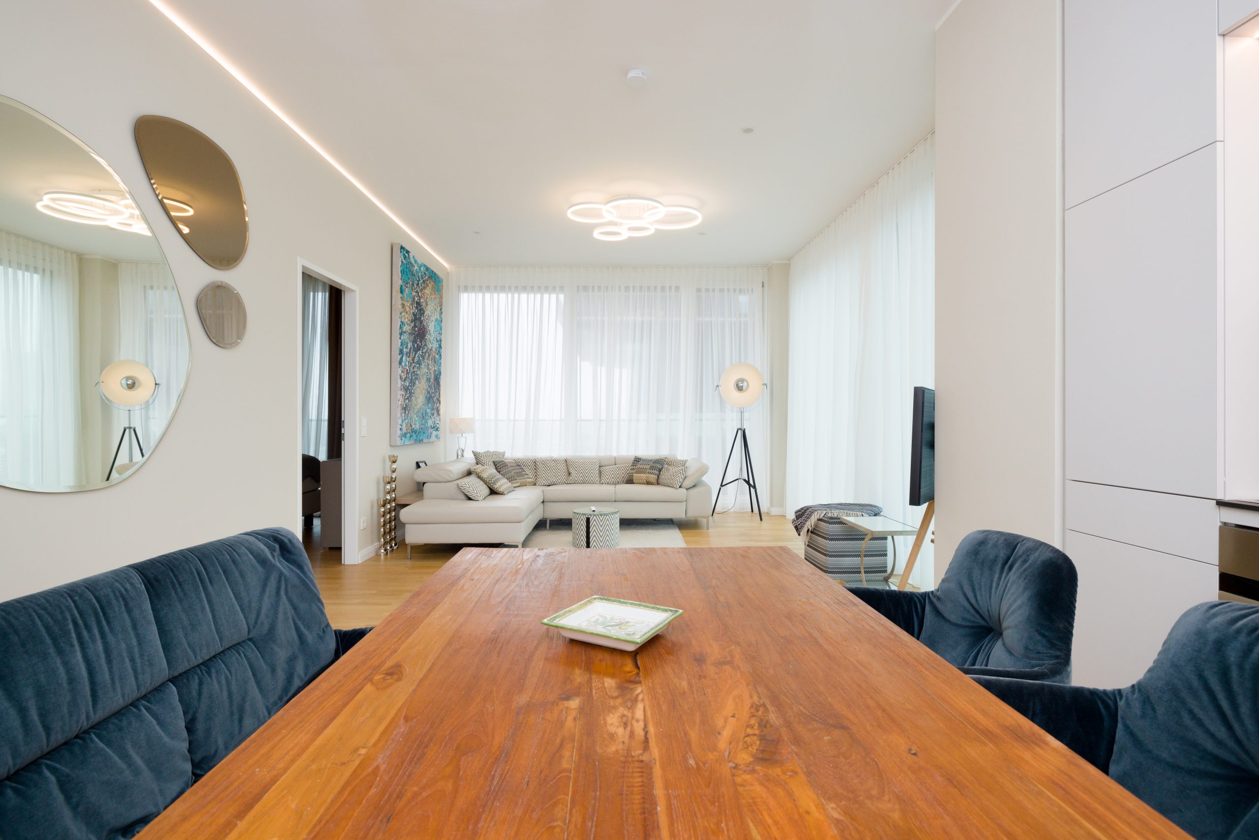 Fully furnished apartment in the best high building of the world: Triiiple Tower. The apartment has everything you need in a new building with elevator (no barriers like stairs!) and the space is perfectly used. Living room with fully equipped kitchen, couch and dining table. Bedroom with a big closet and bathroom with bath tub. Separate toilet. The best thing is the 103m2 big terrace!