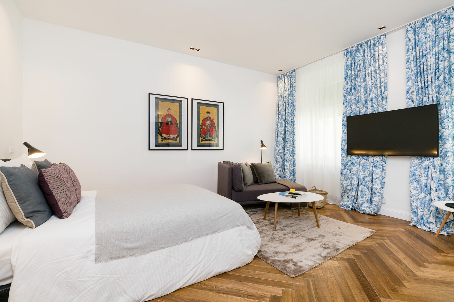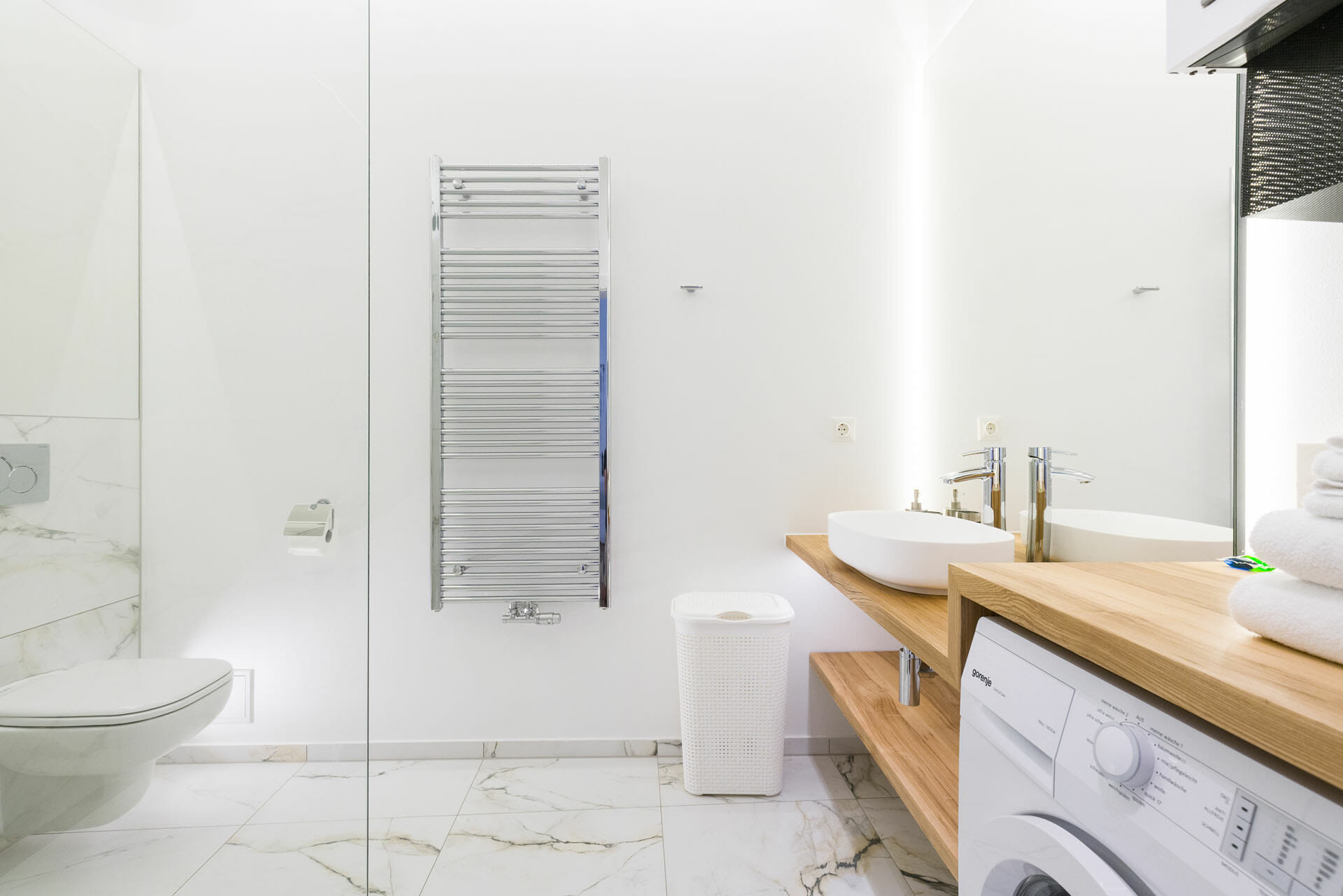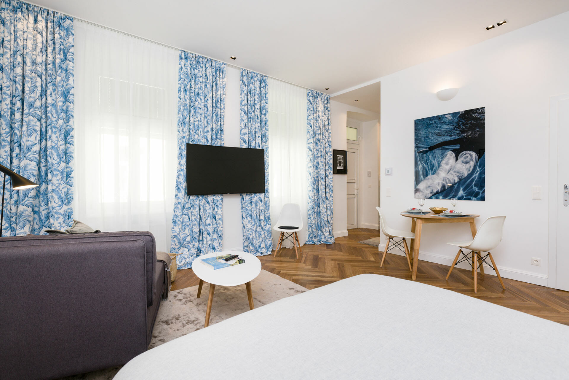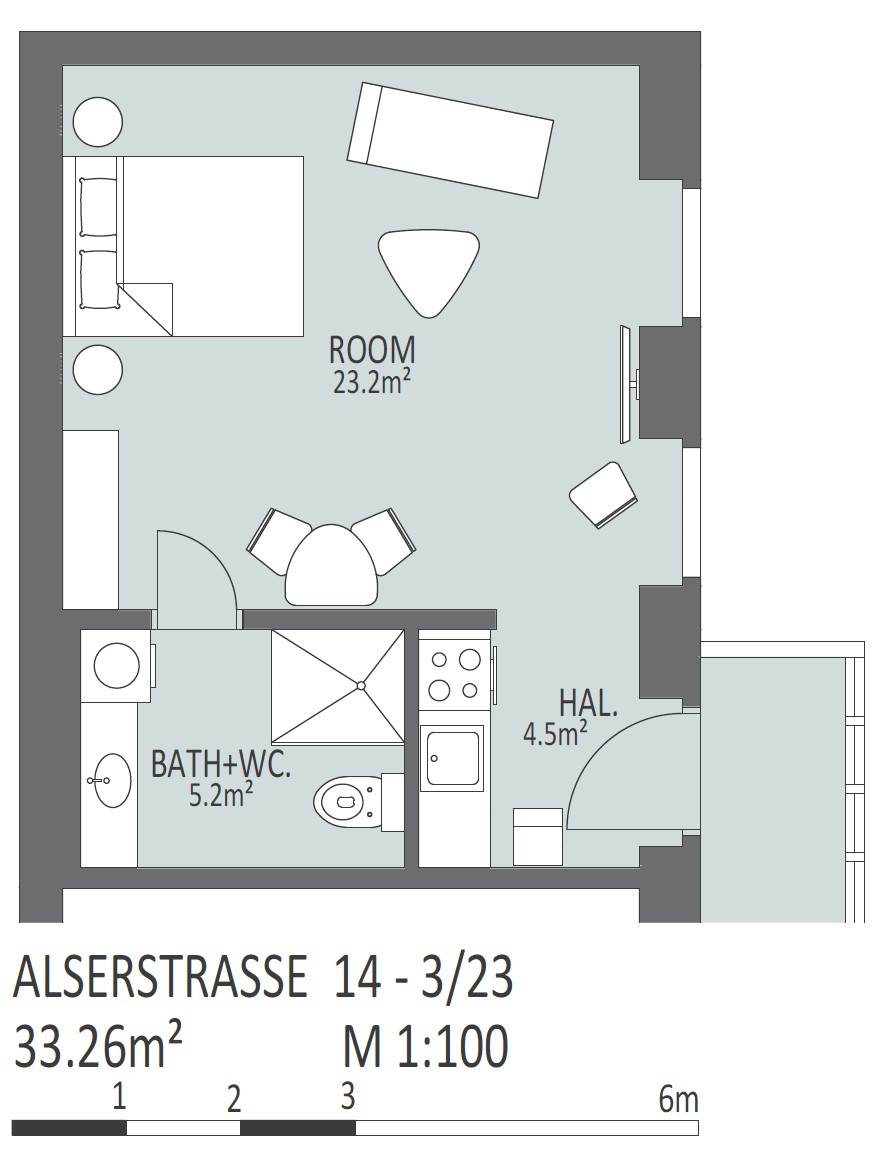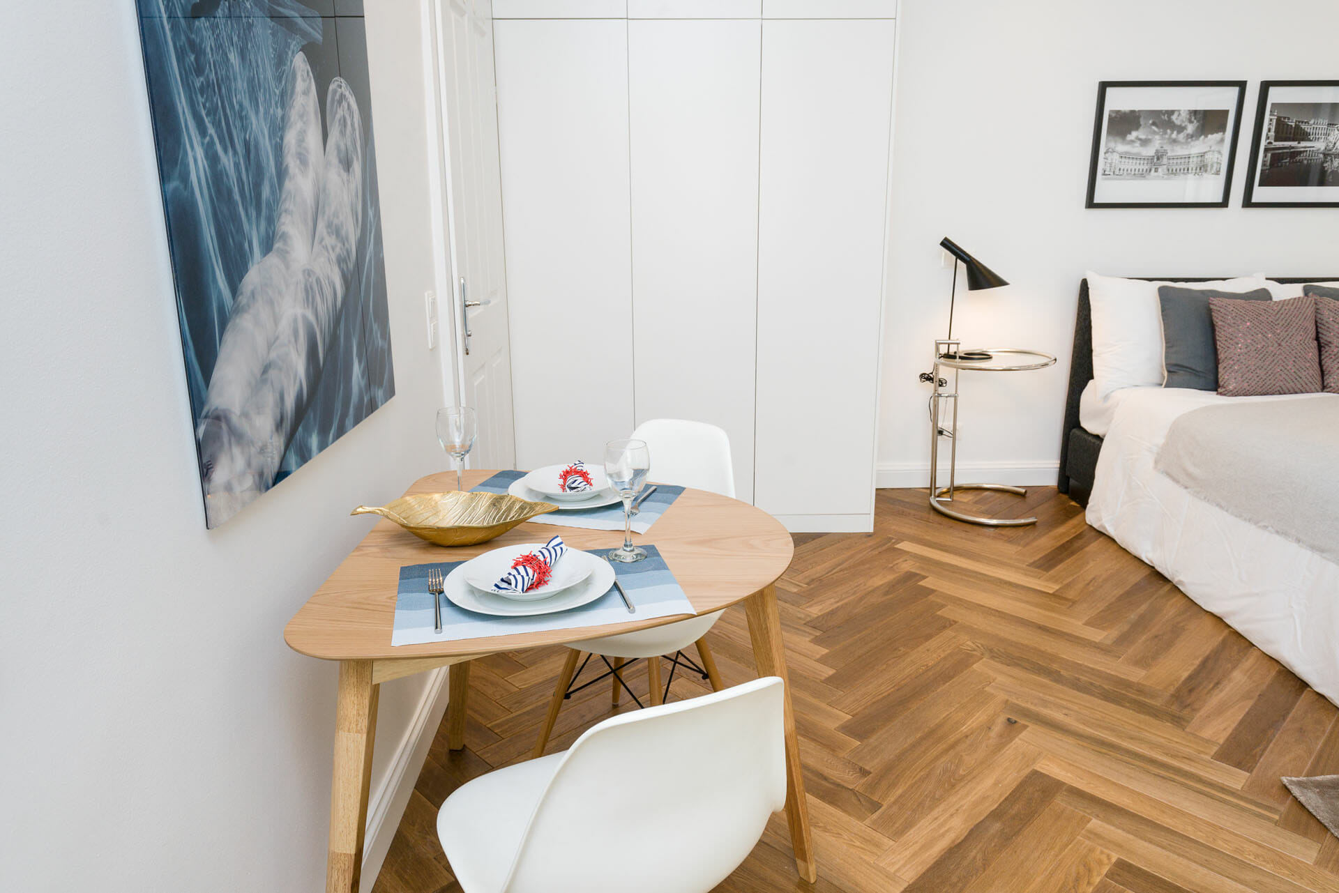 This beautifull Studio Apartment has been designed and furnished by our own interior designer with individual pieces. It is equiped with a 55inch Samsung UHD curved smart TV. The bathroom is very bright and smart and Comes with a washing machine. Vienna Prestige is one of the leading Providers of high end furnished stylish serviced Apartments in Vienna in Top Locations at great value for Money.