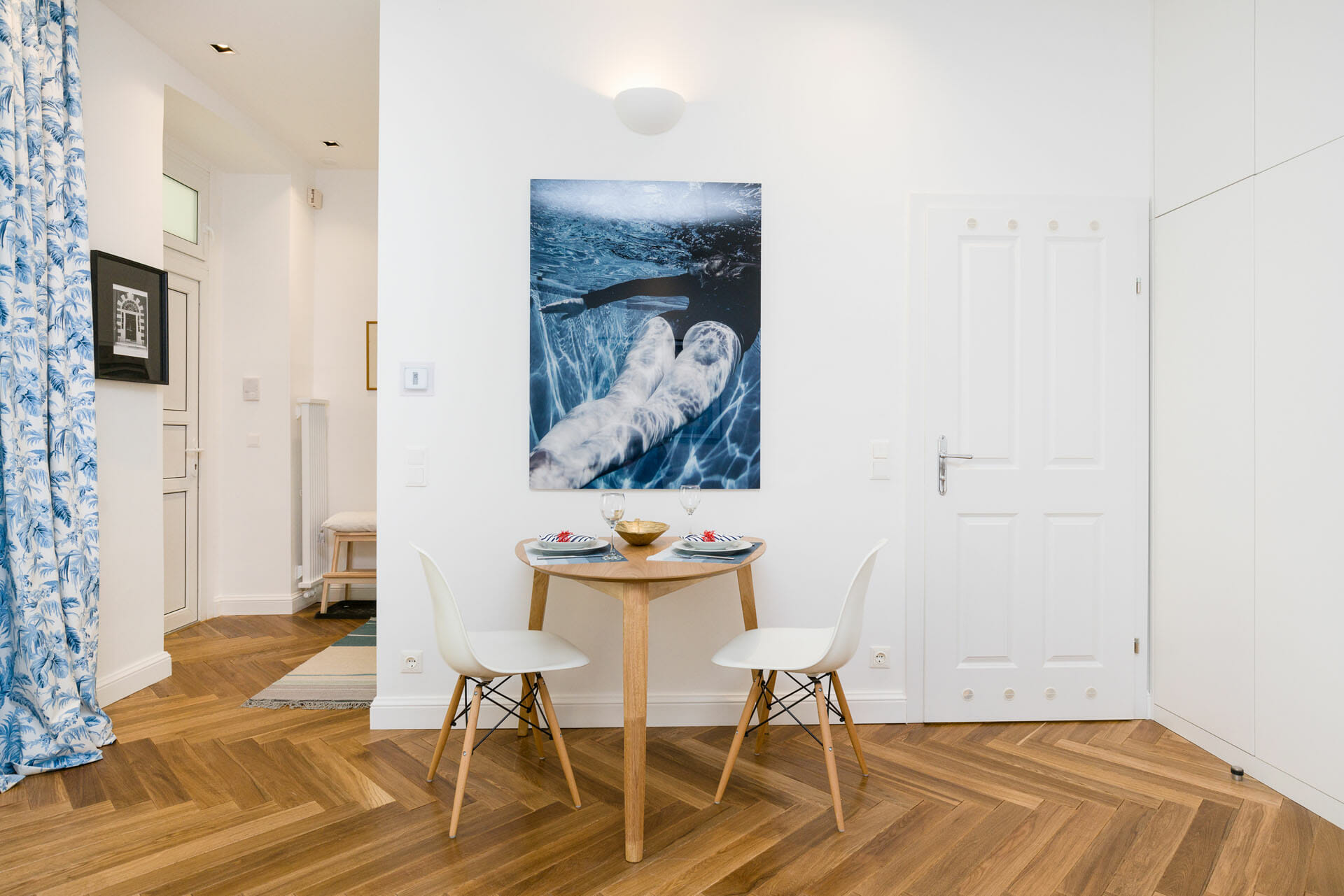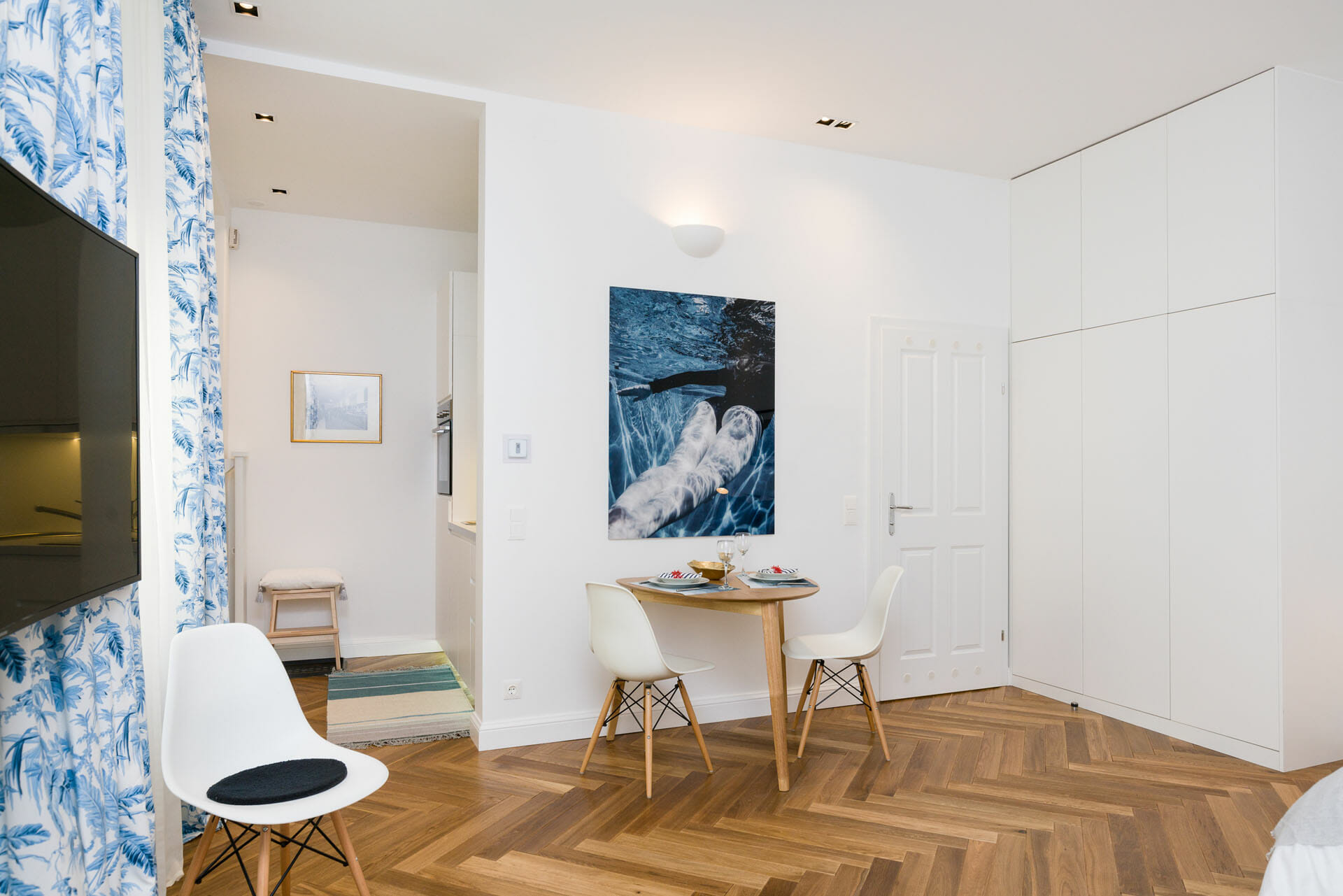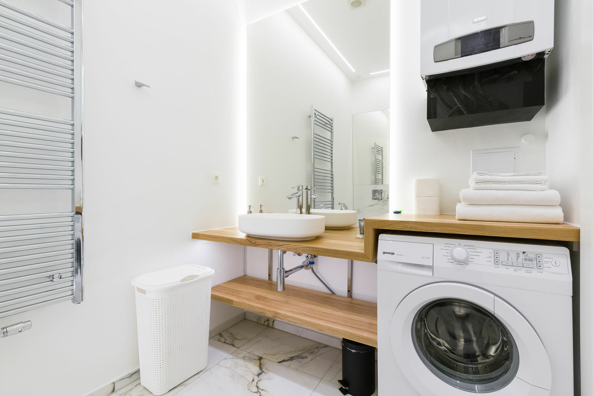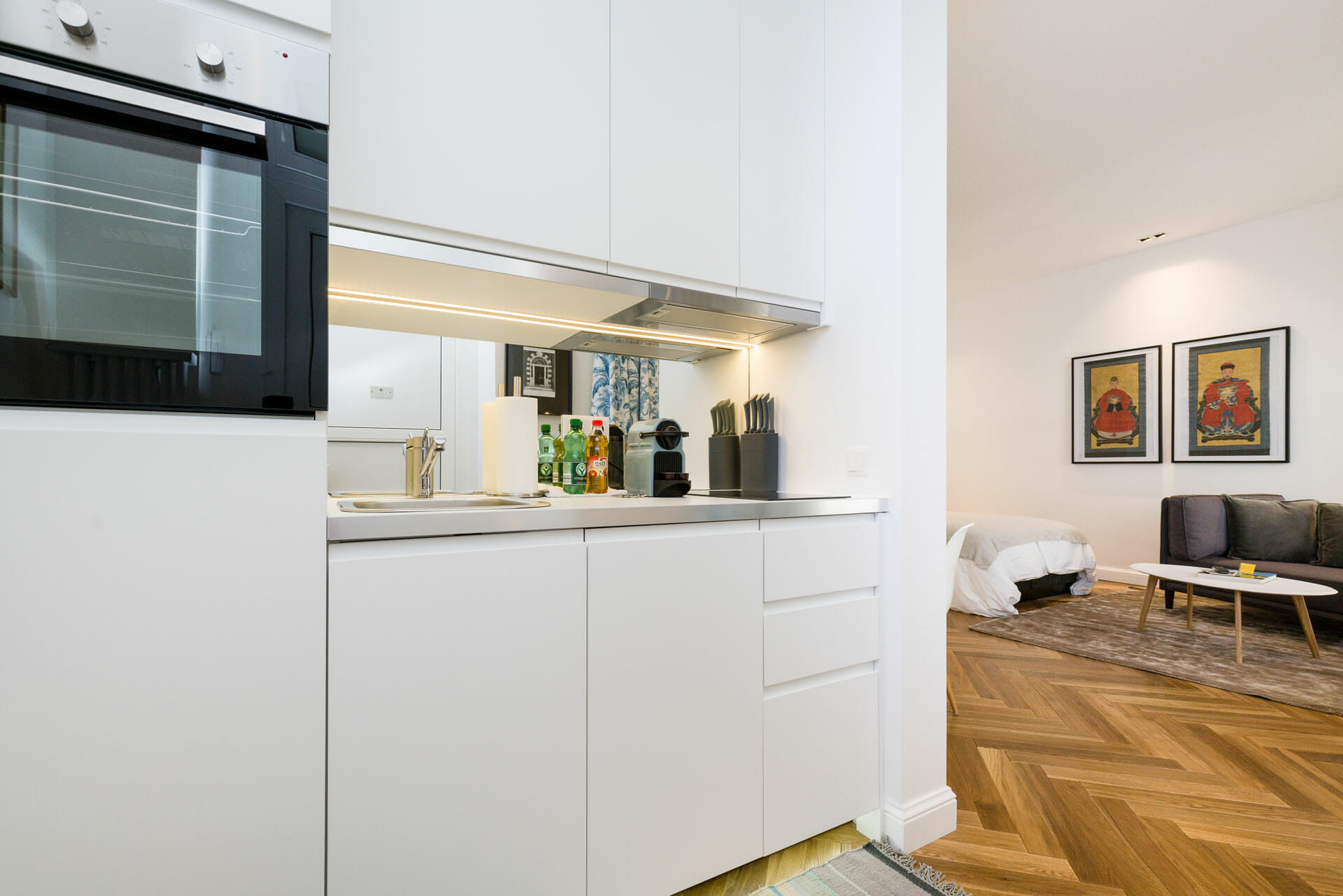 This beautifull Studio Apartment has been designed and furnished by our own interior designer with individual pieces. It is equiped with a 55inch Samsung UHD curved smart TV. The bathroom is very bright and smart and Comes with a washing machine. Vienna Prestige is one of the leading Providers of high end furnished stylish serviced Apartments in Vienna in Top Locations at great value for Money.