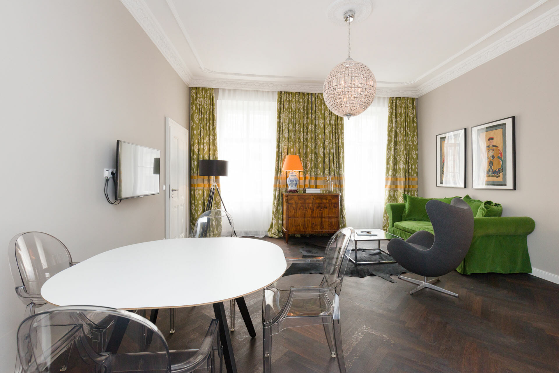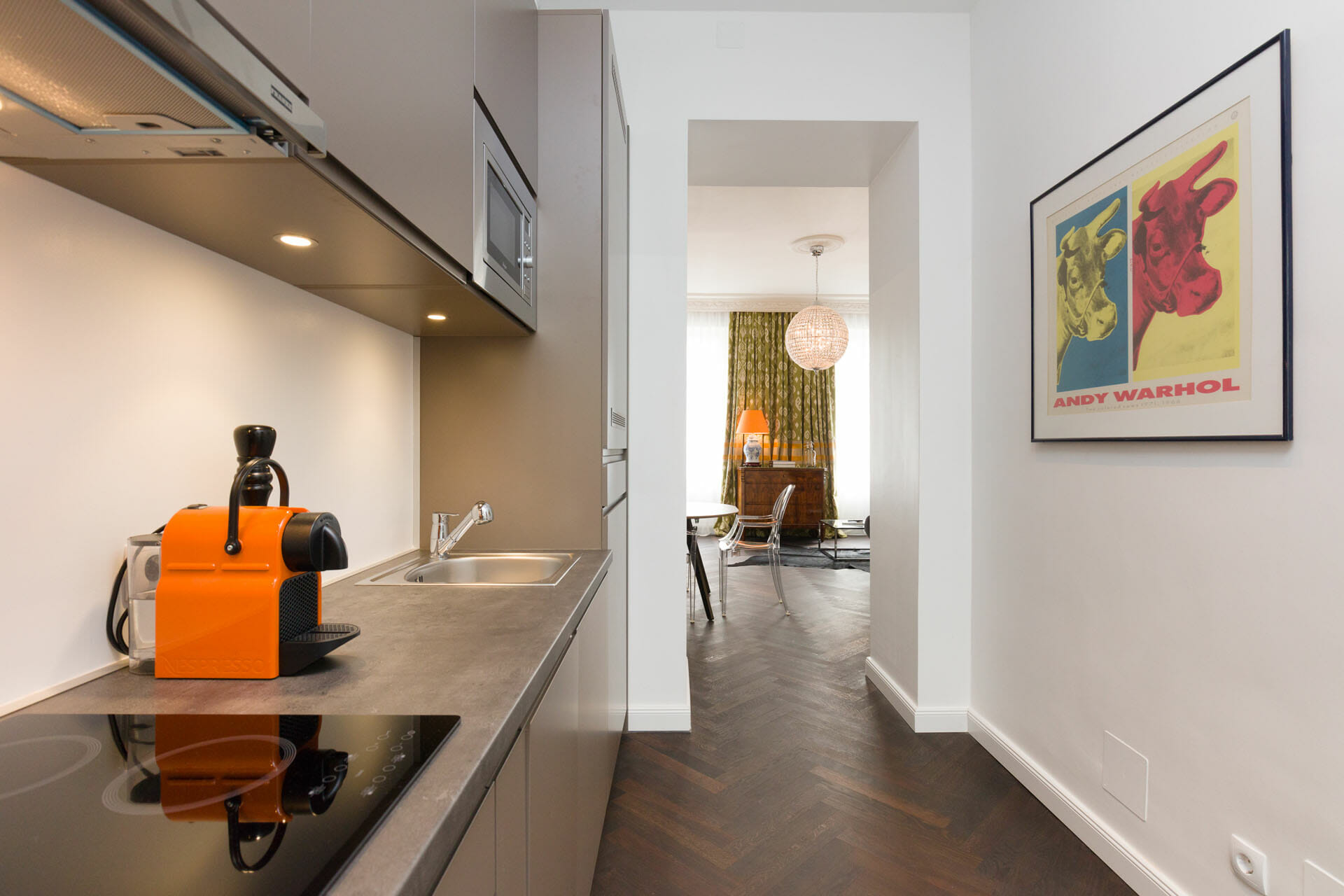 The apartment is located in one of the most beautiful quarters of Vienna, the Servitenviertel. Similar to the London Portobello Street, there are countless restaurants, bars and small shops in the immediate vicinity. The recreational area Danube Canal, and the easily accessible Danube Island, are on the doorstep. All shops of the daily need are reachable within a few meters. The tram is in front of the door. Subway is in the immediate vicinity. The city center can be reached in a few minutes on foot.