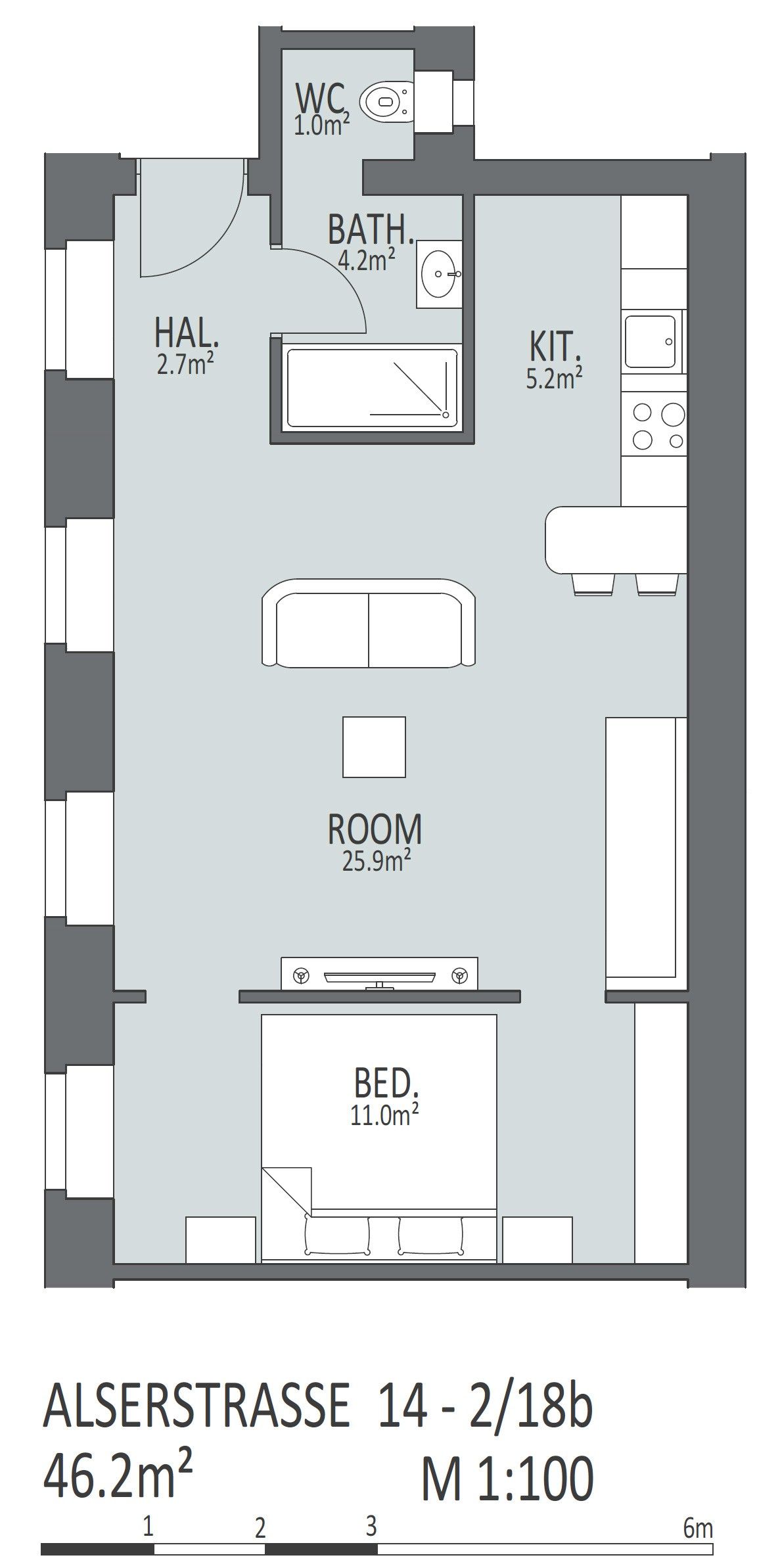 Welcome to this beautifully designed 1-bedroom apartment, offering a perfect blend of modern style, comfort, and functionality. With 46m² of well-thought-out space, this apartment is ideal for those seeking a stylish urban retreat.