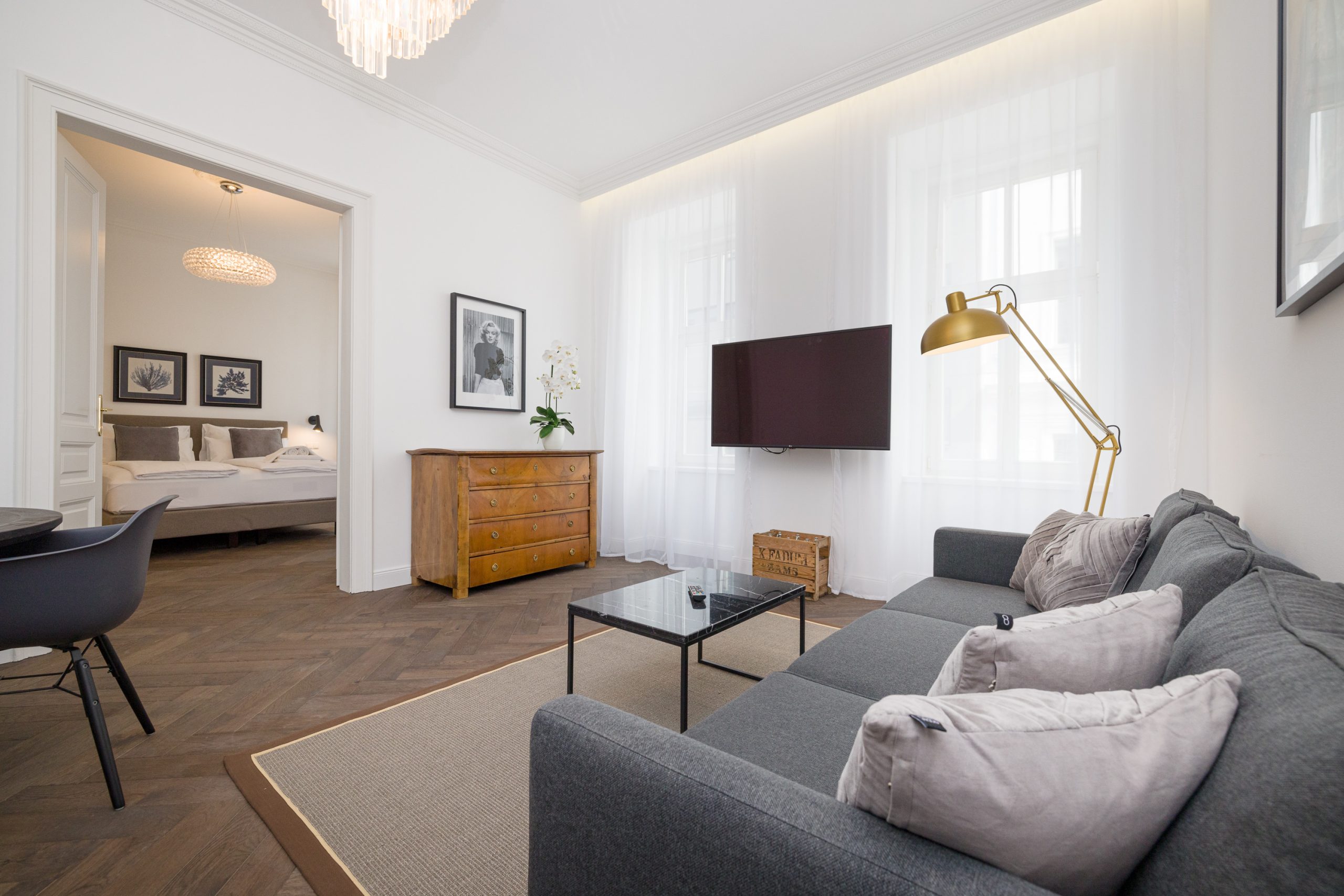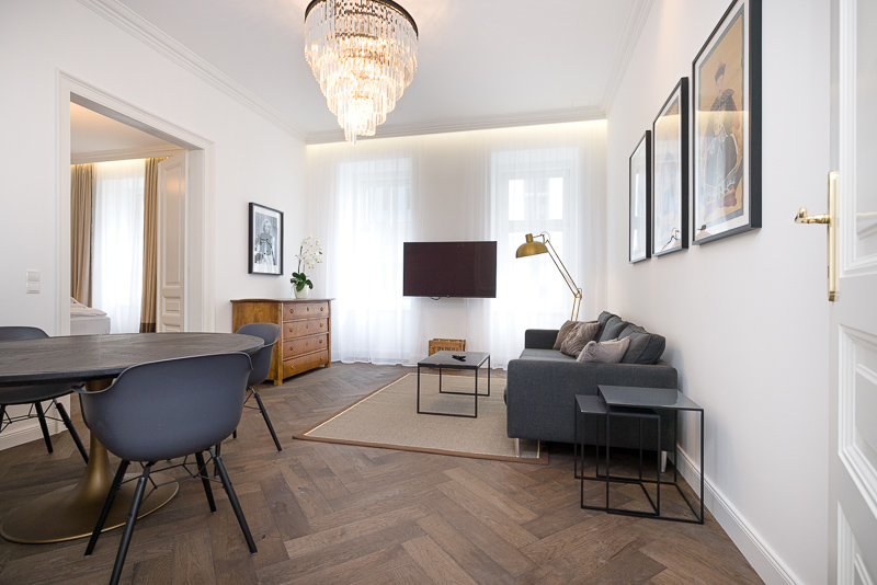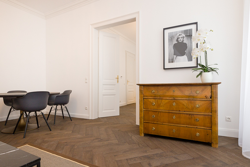 The 2 bedroom Apartment is located in the heart of Vienna, surrounded by sightseeing attractions and shopping opportunities. Volkertstrasse leads directly to the center of the city. In the surrounding area there are some shops for daily needs, a nice vegetable market, and some restaurants. Augarten is a very nice area and only a few steps from the apartment building. Schwedenplatz, Graben, the famous shopping street Kärntner Straße and the Stephansplatz are connected and together form the heart of Vienna. The surrounding area offers a great variety of programs and events, museums and galleries, monuments and architectural attractions and of course countless cafes and restaurants.