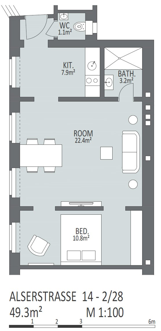 Nestled in Vienna’s vibrant 9th District, this apartment is surrounded by cultural landmarks, shopping streets, and bustling city life. Just a few steps away from the Medical University of Vienna and the University campus Altes AKH, it offers unparalleled proximity to educational institutions. The neighborhood is filled with local shops, cafés, and restaurants, making it a convenient place for daily living.