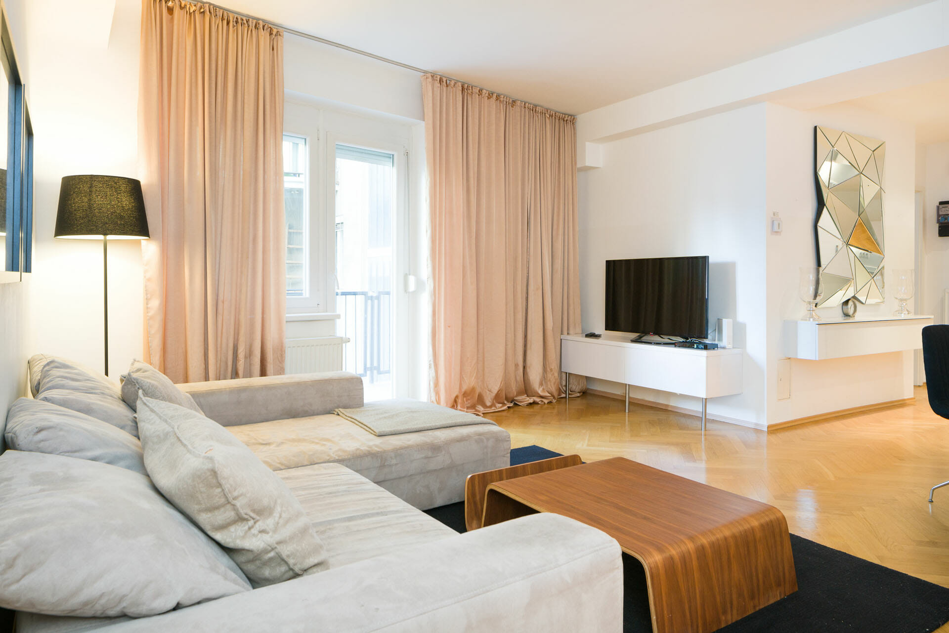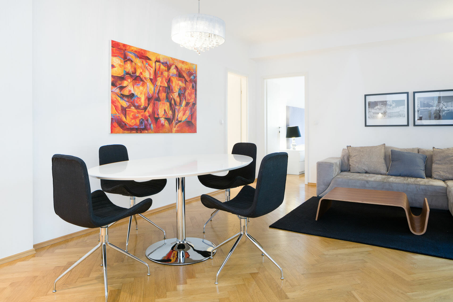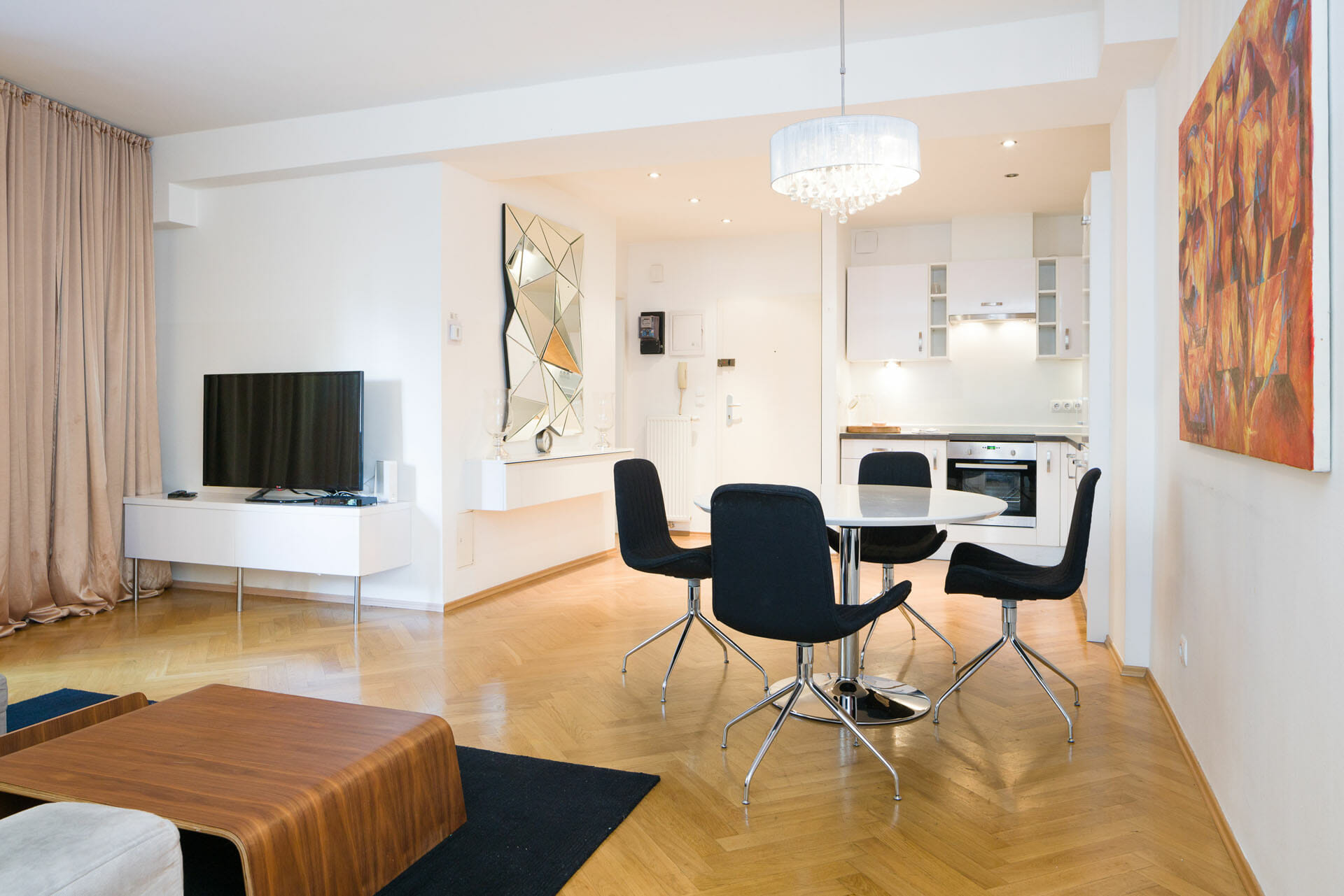Luxurious Business Apartment in the centre of Vienna Equipment: electric stove, oven, refrigerator, freezer, coffee machine, water heater, toaster, frying pan, cooking pot, Kitchenware, sofa, TV, double bed, bathtub, lift, washing machine, vacuum cleaner, Internet, Digital Cable TV, Fully equipped kitchen, Fully furnished interior, Non smoking, Cleaning utensils supplied adequately,