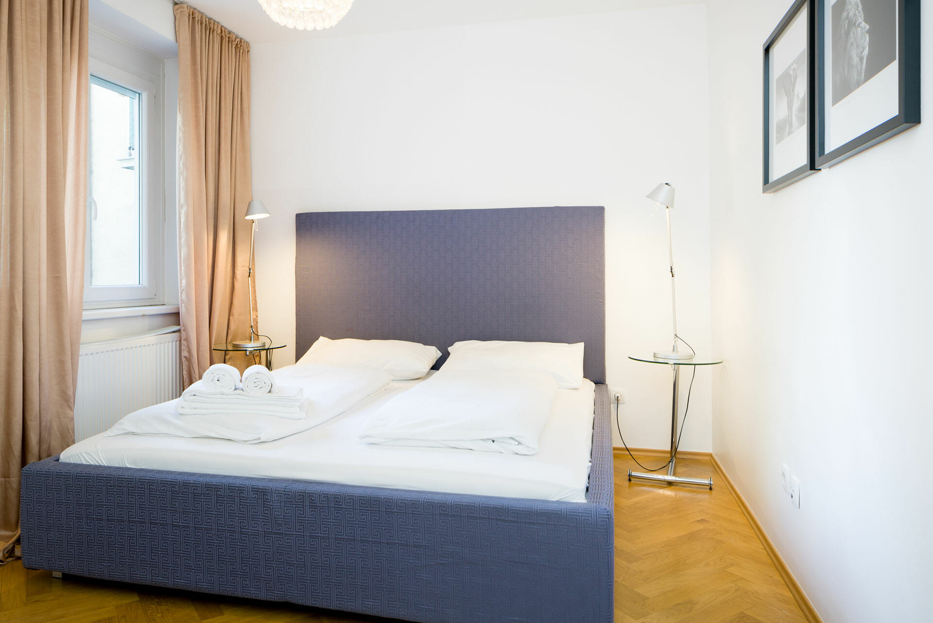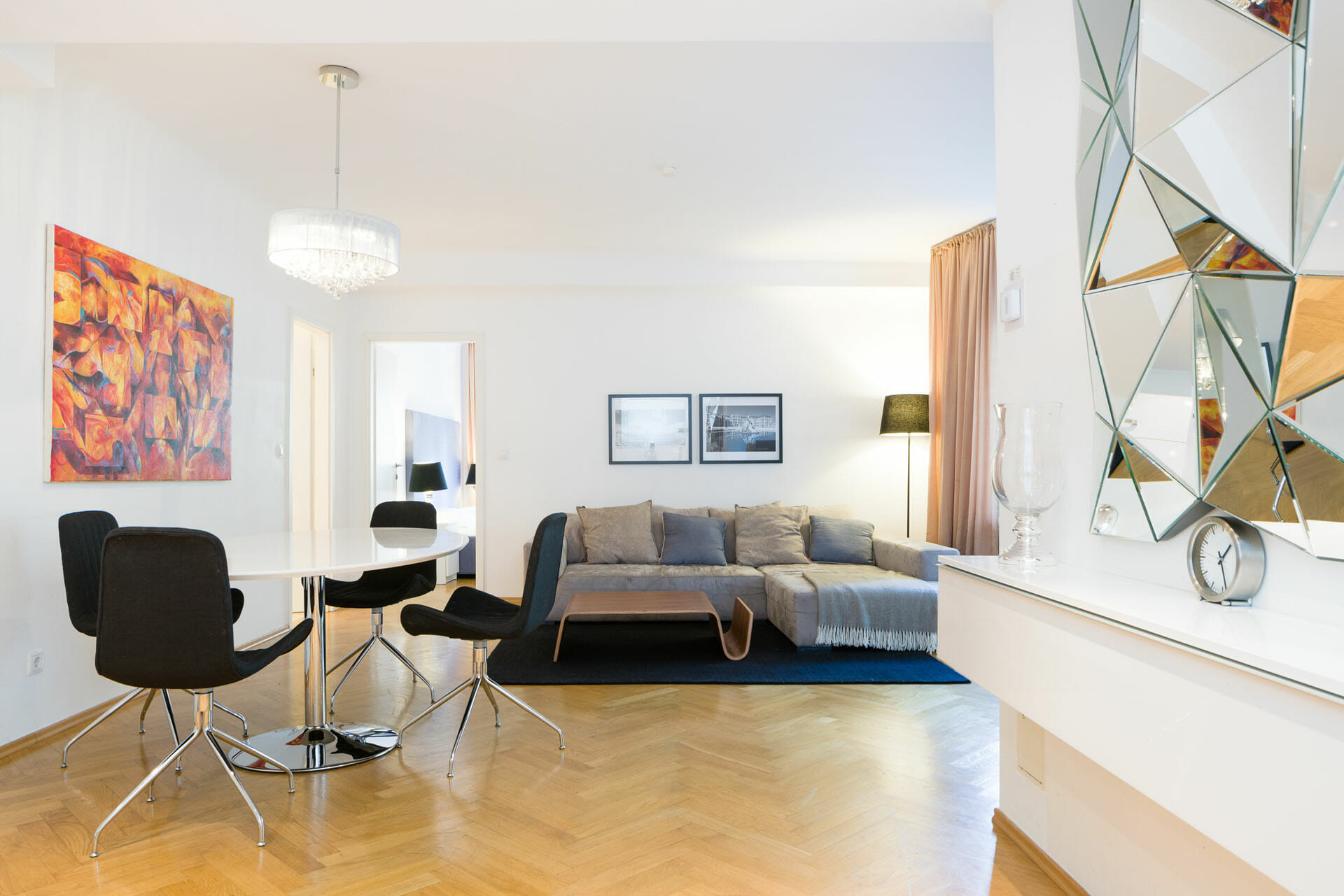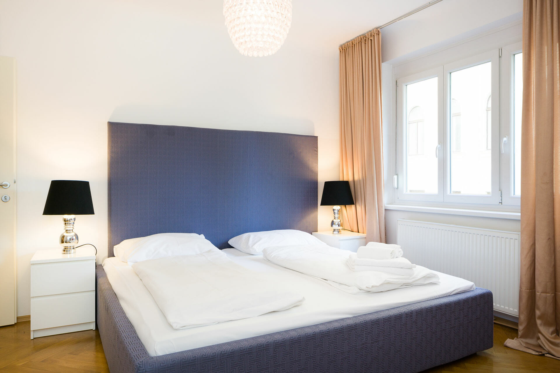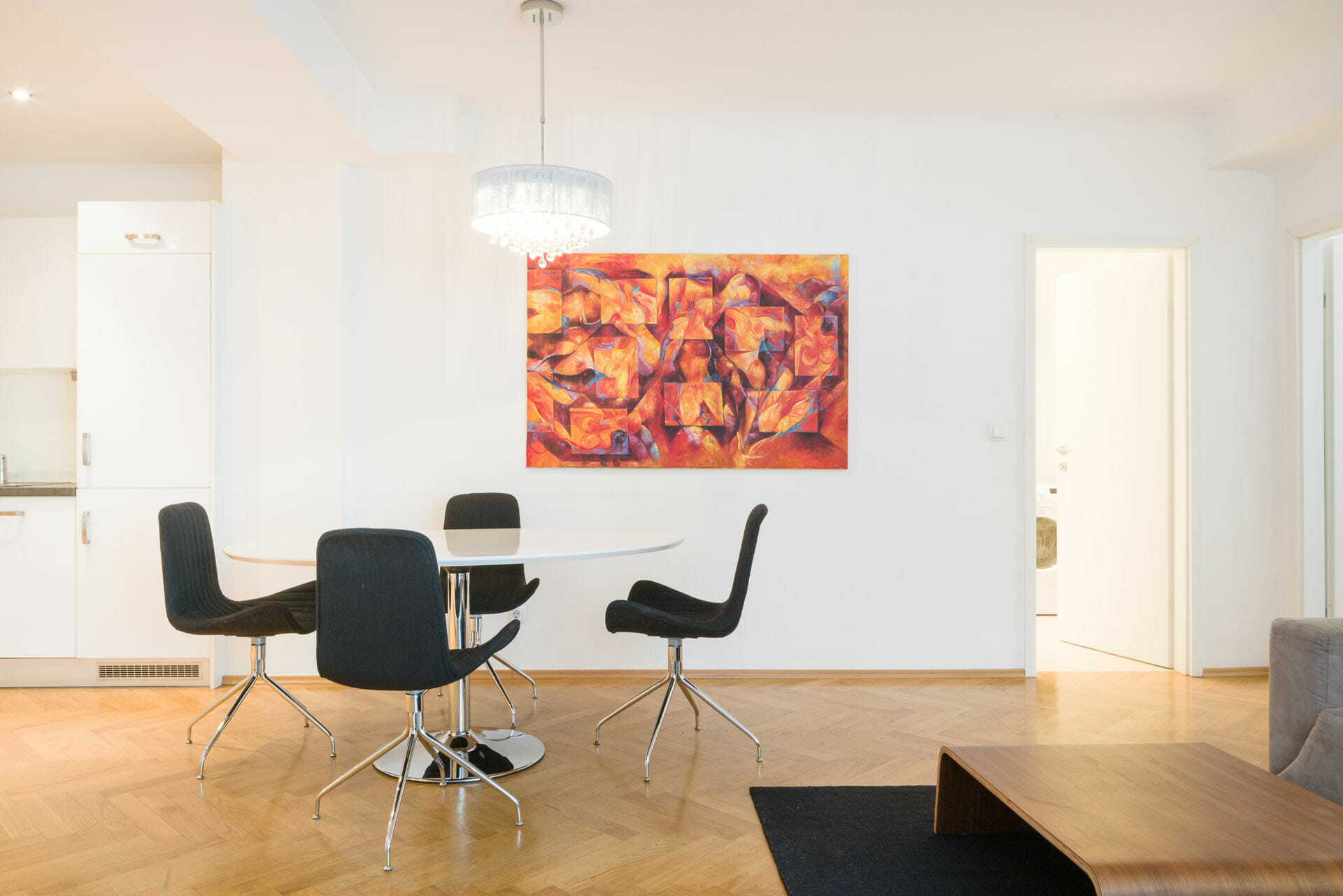 Luxurious Business Apartment in the centre of Vienna Equipment: electric stove, oven, refrigerator, freezer, coffee machine, water heater, toaster, frying pan, cooking pot, Kitchenware, sofa, TV, double bed, bathtub, lift, washing machine, vacuum cleaner, Internet, Digital Cable TV, Fully equipped kitchen, Fully furnished interior, Non smoking, Cleaning utensils supplied adequately,
