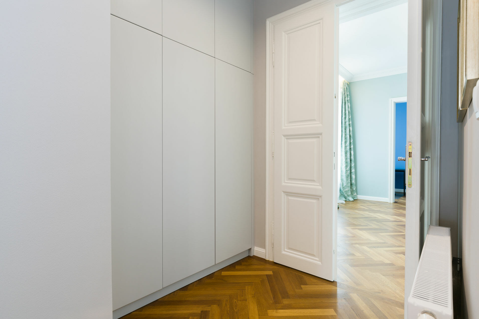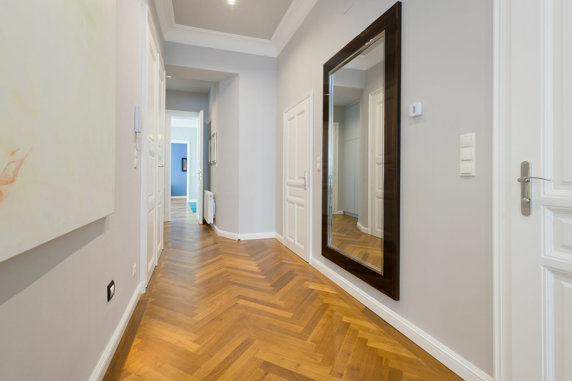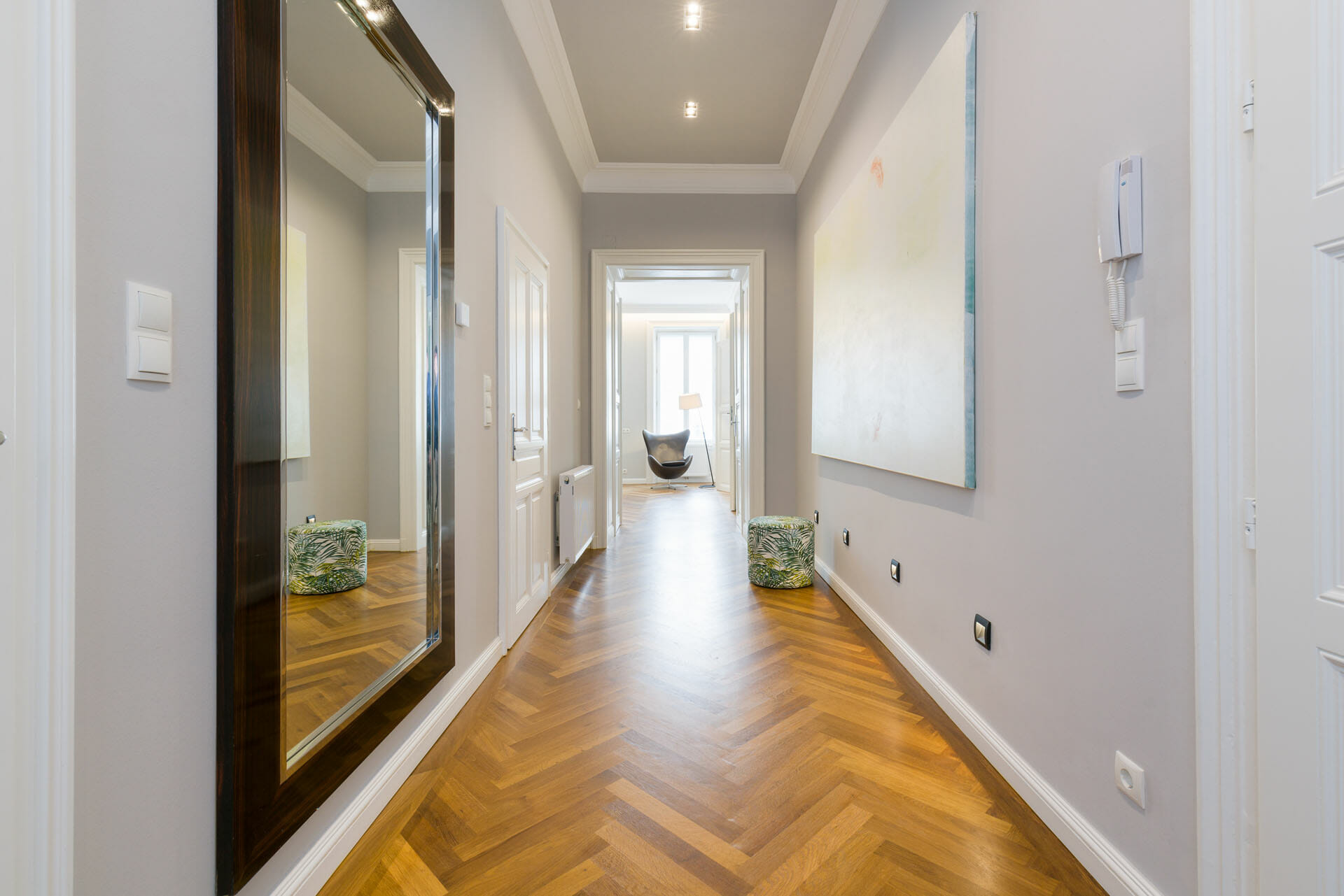 This luxurious 110 m² apartment has been newly renovated and tastefully furnished to offer the perfect blend of modern style and traditional Viennese charm. Upon entering, you are greeted by a spacious hallway featuring an elegant mirror and a stunning art piece, setting the tone for the rest of the apartment. The bright, airy rooms with high ceilings give the space a unique, open feel, creating a truly special atmosphere.