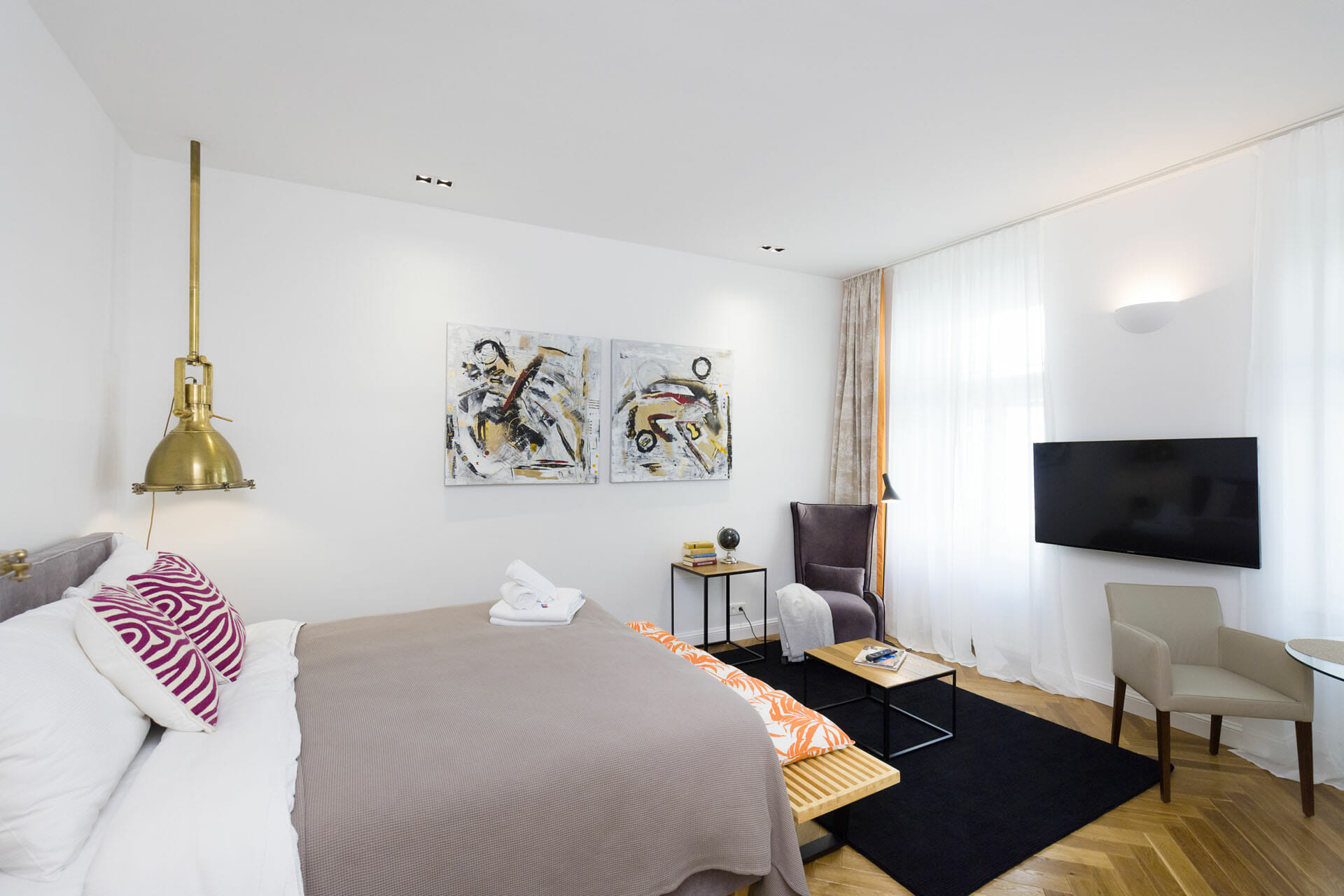 The apartment is located in the heart of Vienna, surrounded by sights and shopping opportunities. In the area there are some shops for the daily needs and a wide range of restaurants. The tram is only a 5-minute walk away. The Vienna Ring Road surrounds the entire 1st district and is only two tram stops away. The Schottentor, the Graben, the famous shopping street Kärntner Straße and the Stephansplatz are connected with each other and together form the heart of Vienna. The surrounding area offers a wide variety of programs and events, museums and galleries, monuments and architectural attractions and of course countless cafes and restaurants.