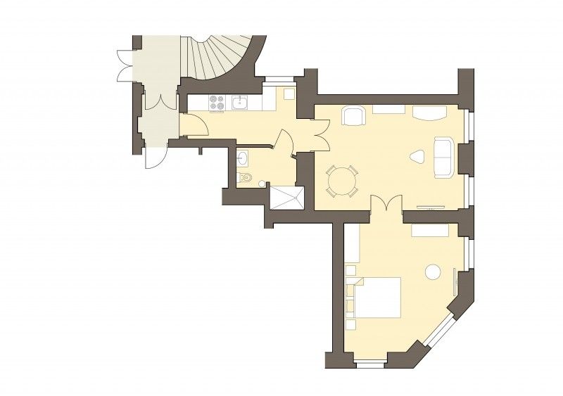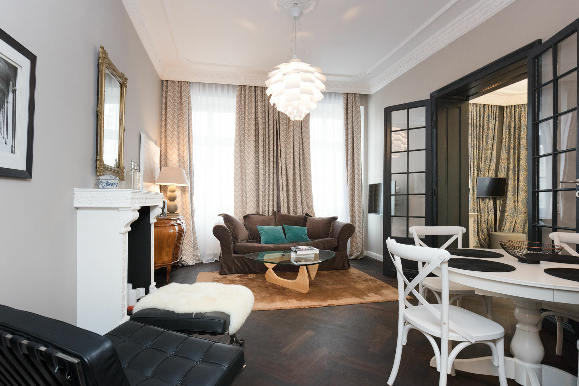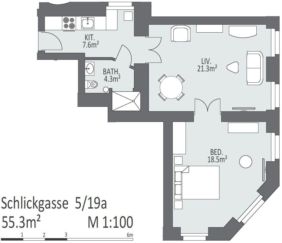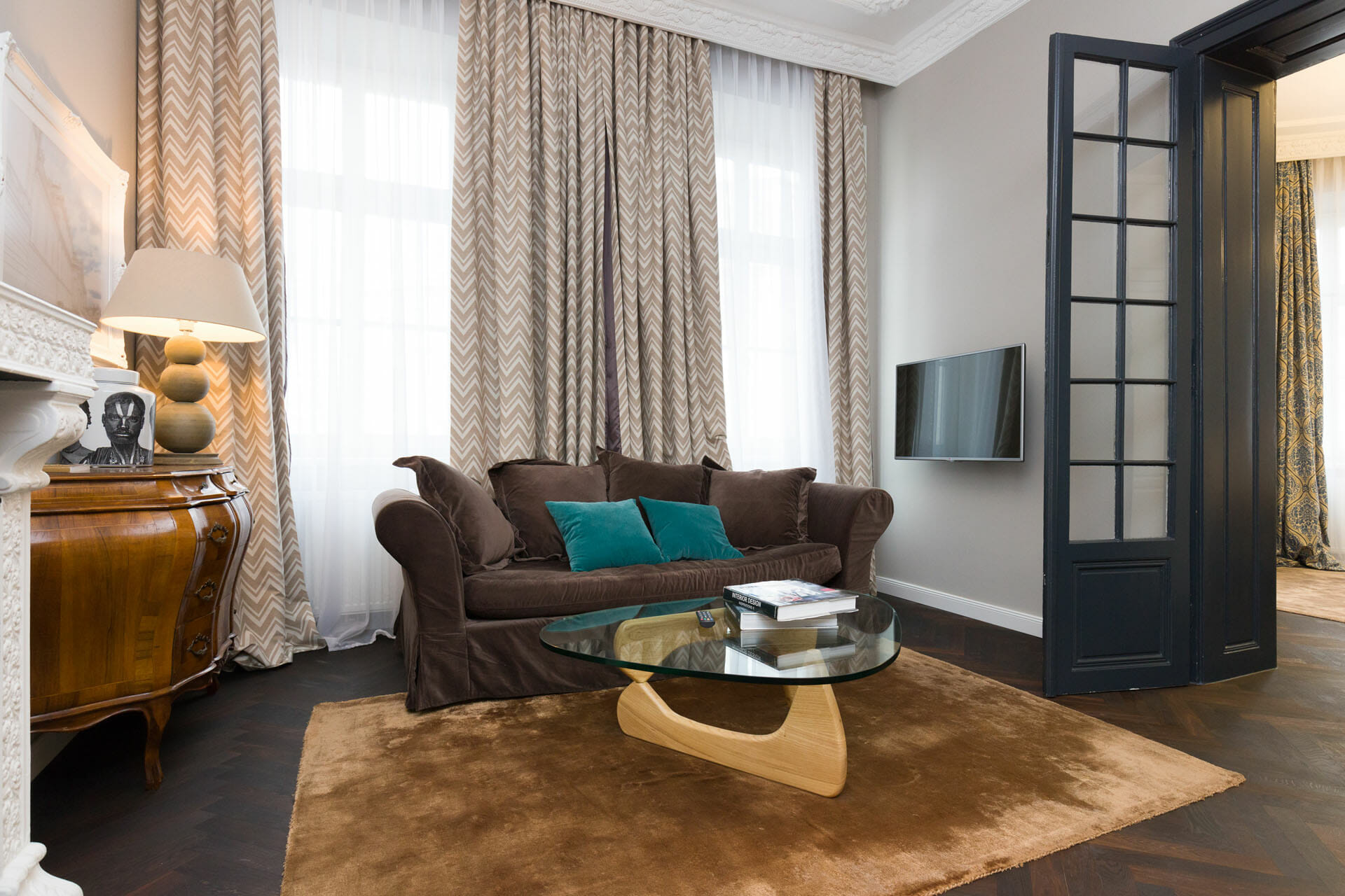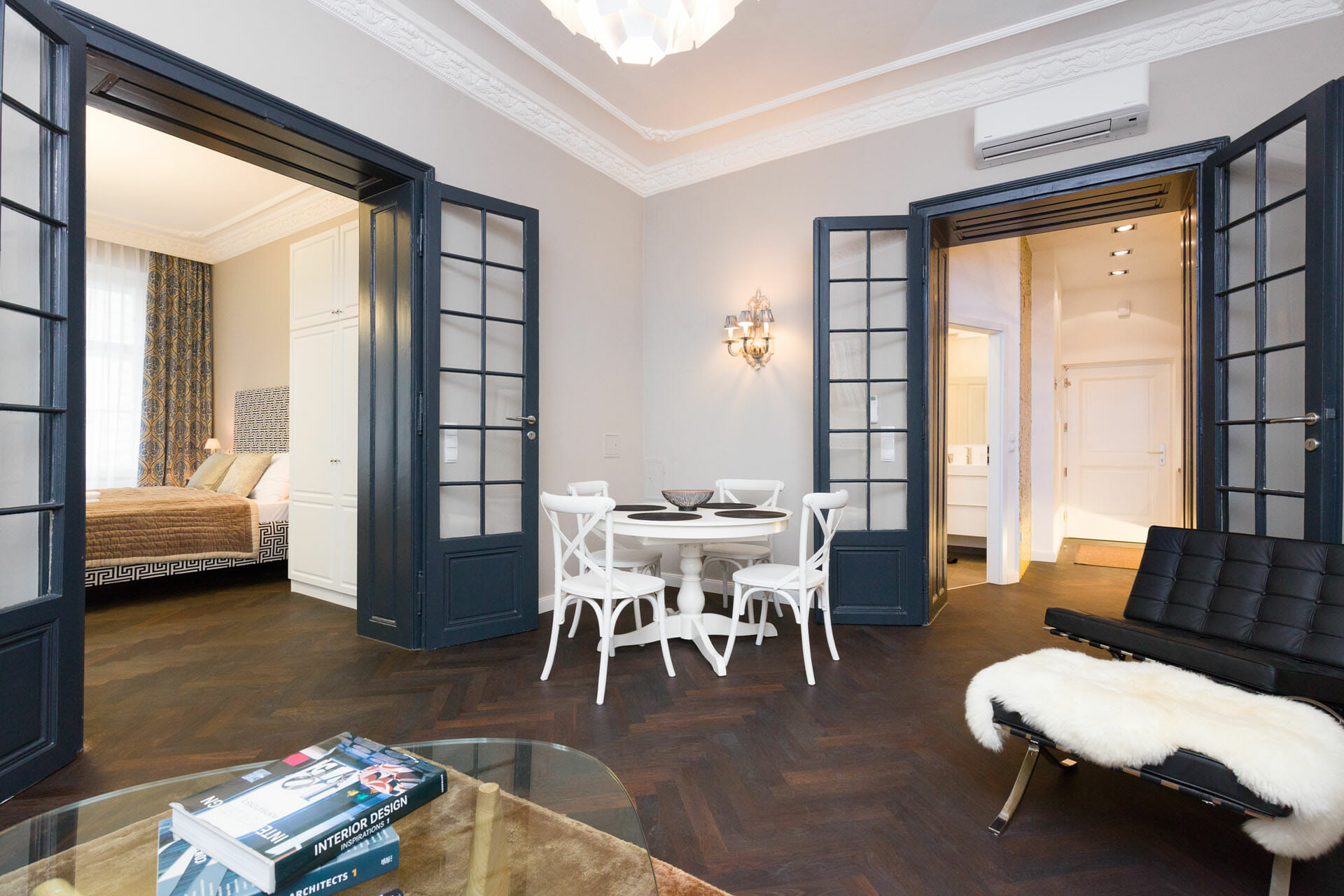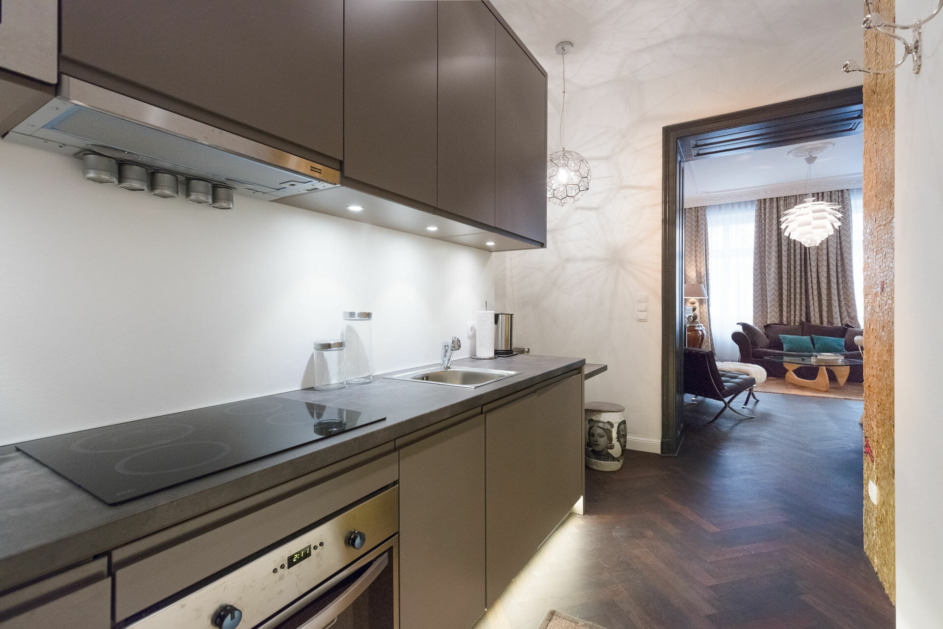 This 50 sqm apartment was recently rebuilt. It is fully equipped including air conditioning (in the old building is not very often). Old building with high rooms. TV in living room and bedroom. Altwien mass building cupboards. The apartment was completely designed with dark solid wood parquet. A modern spacious lift takes you to the 3rd floor of the fully refurbished apartment building in prime location. The attic was developed high quality.